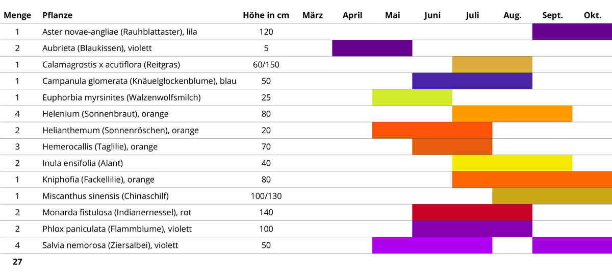 Wann blüht was und wie hoch werden die Pflanzen? in unserem Blütezeitkalender sehen Sie alle Bestandteile des Beet-Sets.