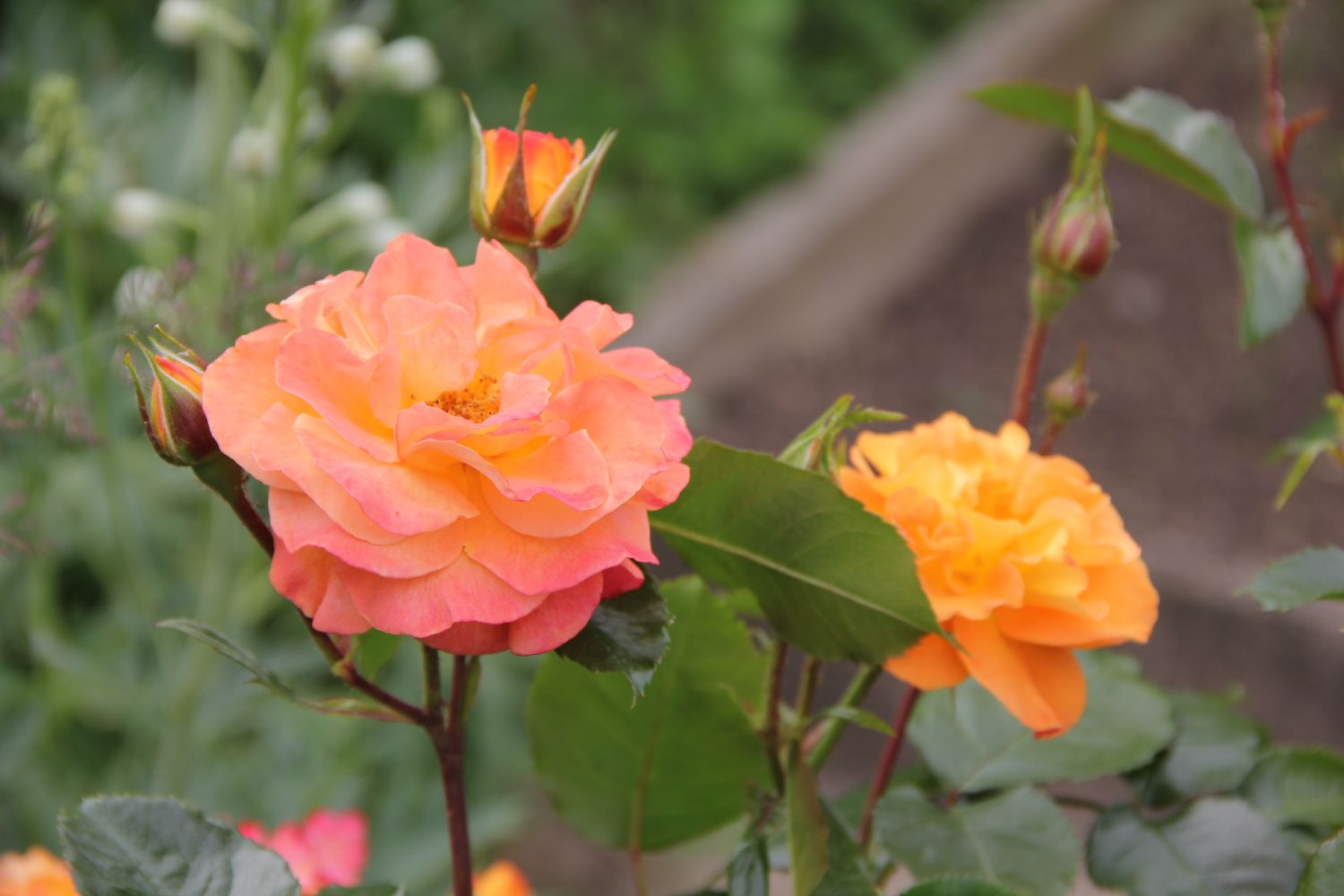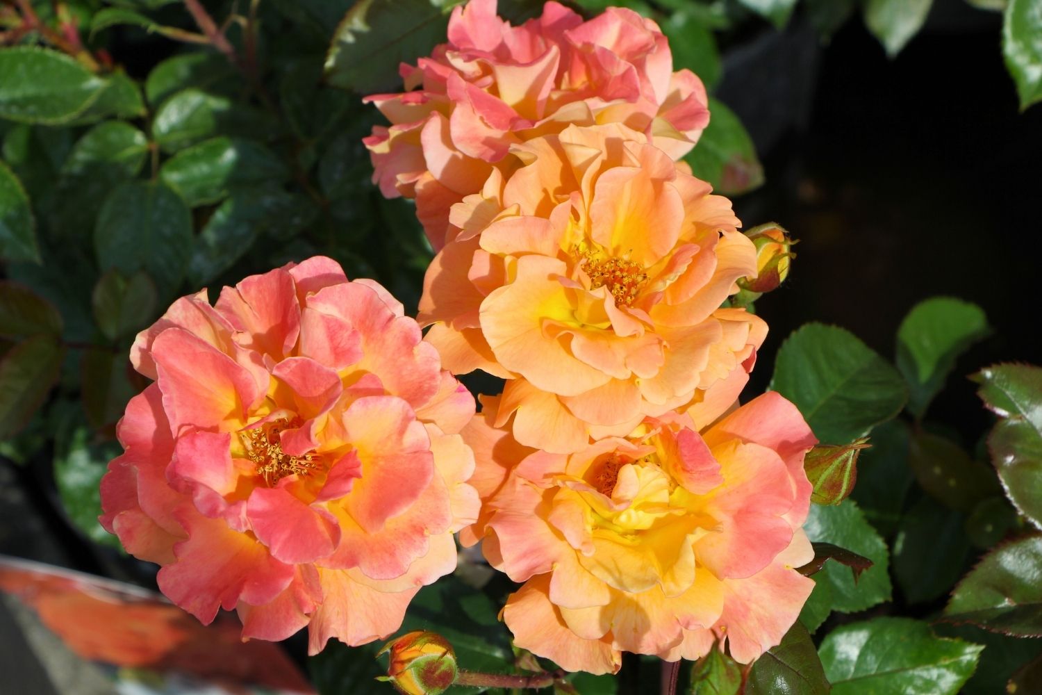 Die Beetrose 'Westzeit' besitzt halbgefüllte Blüten in Apricot-orange mit leichtem, ansprechendem Duft und sorgt in sommerlichen Beeten über Monate für warm-leuchtende Farbtupfer.