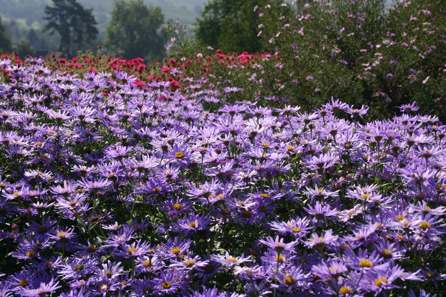 Aster x frikartii 'Mönch' ist eine Sommeraster die ab August große, violettblaue Blüten trägt die von Bienen und anderen Insekten als beliebte Nahrungsquelle angenommen werden. Die Frikarts Aster, als aufrecht, feintriebig wachsende Staude erreicht eine Höhe von bis zu 80 cm und ist hervorragend als Schnitt- und Rabattenpflanze geeignet.