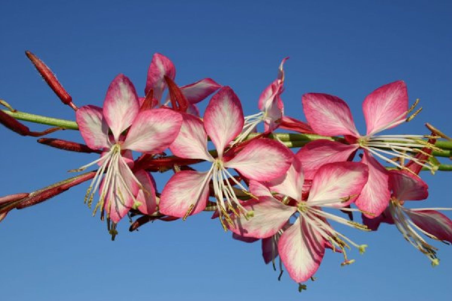 Elegant und gleichzeitig romantisch verspielt, so wirkt das Beetensemble „Lovely“ auf den Betrachter, wenn sich von Frühsommer bis Herbst seine Blütenpracht öffnet und auf nur 1,5 m² Beetfläche eine kleine Sinfonie anstimmt. Eine sehr besonders wirkende Schafgarbe in Lachsrosa wird dabei begleitet von einer cremeweißen, duftenden Bodendeckerrose, dauerblühender Prachtkerze, Storchschnabel, aromatischem Steinquendel, silbrigem Wollziest und Perlkörbchen sowie weißblütiger Königskerze und strukturgebender Fetthenne.