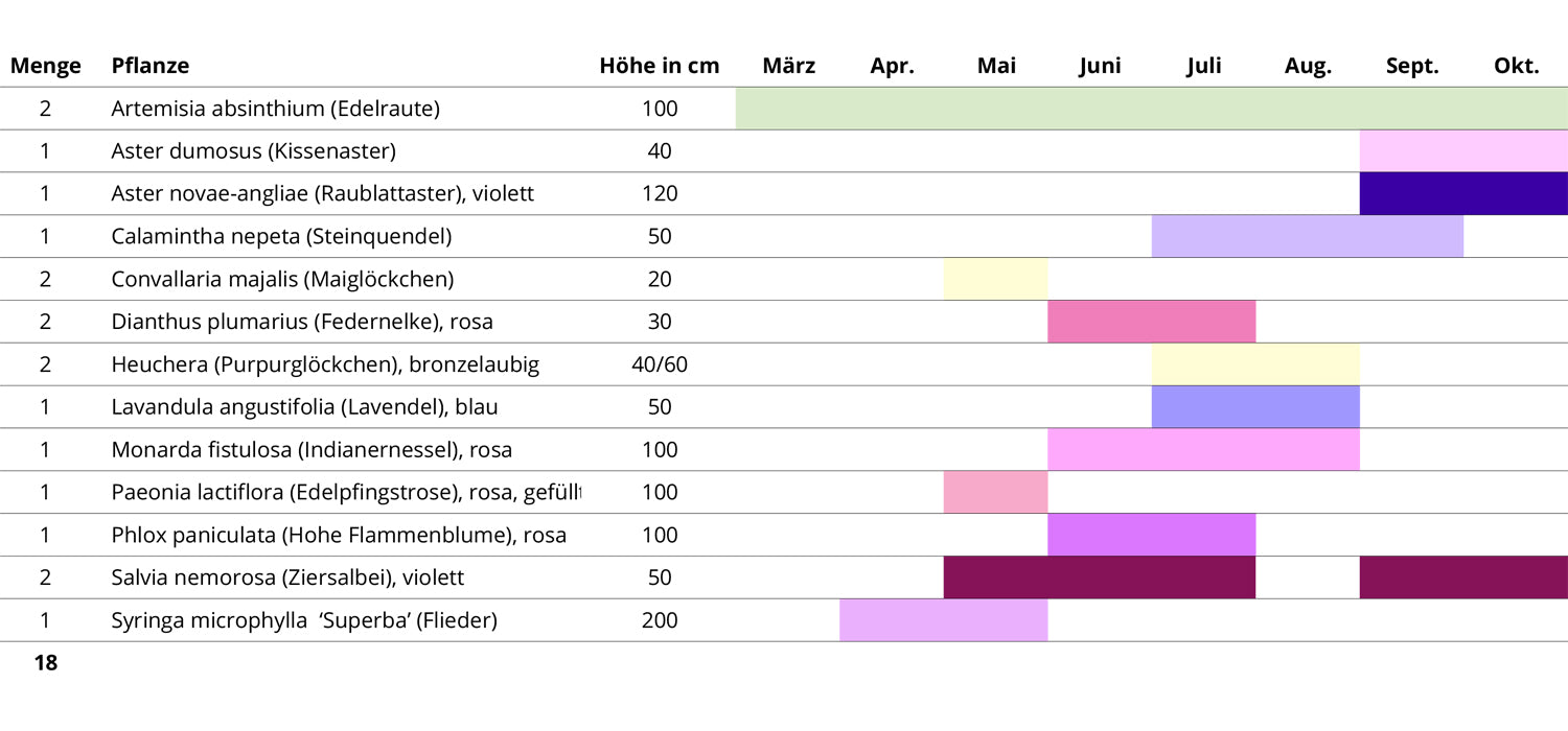 Wann blüht was und wie hoch werden die Pflanzen? in unserem Blütezeitkalender sehen Sie alle Bestandteile des Beet-Sets.