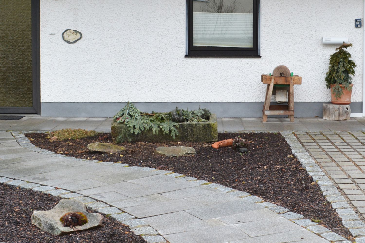 Ein dreieckiges Beet, das den Weg zum Haus von der Auffahrt trennt, dient als perfekte Leinwand für das Zeppelin-Beetpaket ‚Brautzauber‘. Diese Ton-in-Ton-Komposition ganz in Weiß und Silbergrau sorgt für einen frisch-eleganten Anblick und begrüßt jeden, der an ihm vorbeigeht, mit einem blütenreichen Lächeln. Von Mai bis weit in den Oktober hinein erfreut dabei eine herrliche Auswahl an Blattschmuck- und Blütenstauden. Der Star des Ensembles ist jedoch eine duftende, öfterblühende Strauchrose, die von Juni bis in den Herbst hinein fleißig ihre weiße Pracht zur Schau stellt. Umgeben wird sie von üppigen Staudenvertretern wie Rittersporn, Hoher Flammenblume, Ehrenpreis, Prachtkerze und weißem Scheinsonnenhut.