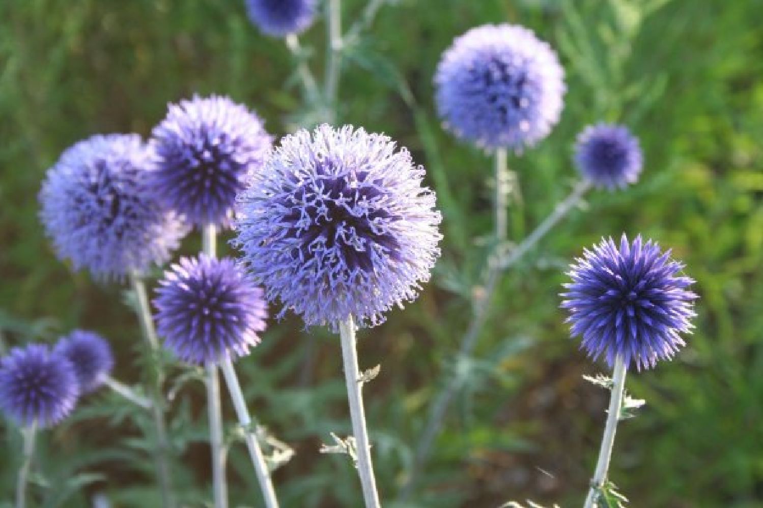 Von Mai bis Oktober wartet das „Traumhafte Terrassenbeet“ mit einer Vielzahl toller Pflanzen in Rosa-, Lilablau-, und Purpurtönen auf, die aufgelockert werden durch klares Weiß und frisches Gelbgrün. Es ist gespickt mit duftenden Pflanzen wie einer köstlichen Englischen Rose, kerzenförmiger Duftnessel, hohen Bartiris, Flammenblume oder Steinquendel. Für Struktur sorgen der immergrüne Blaustrahlhafer und die architektonische Kugeldistel. Um den Blütenreigen lange fortzuführen, wurde bei der Pflanzenauswahl sowohl auf saisonale Aspekte wie die herbstblühenden Eisenhut, als auch dauerblühende Stauden wie Katzenminze und Storchschnabel gesetzt.