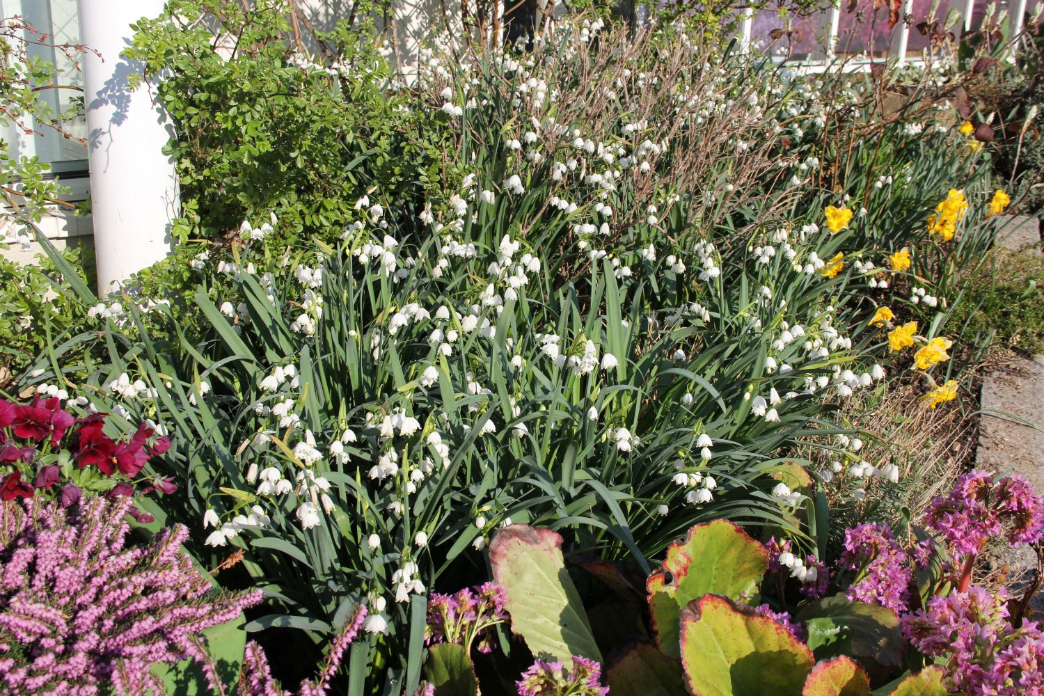 Im Frühsommer blüht die Leucojum aestivum 'Gravetye Giant', welche mit unserem heimischen Märzenbecher verwandt ist. Diese Sommer-Knotenblume trägt ihre glöckchenförmigen Blüten auf hohen, schlanken Stängeln. Wir empfehlen sie auch für die Vase.