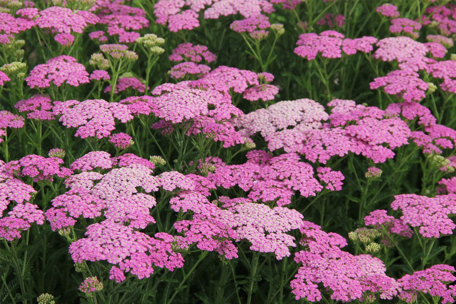 Achillea millefolium 'Pretty Belinda' ® ist eine kompakte, gut standfeste Schafgarbe in unerschrockenem Pink, die an sonnigen Standorten auf gutem Gartenboden große, dichte Blütenteller hervorbringt und damit eine ungeheuer farbintensive Begleitstaude abgibt. Da sich die rosane Blütenfarbe mit dem Alter der Dolden intensiviert, ergibt sich ein ansprechendes zweitoniges Farbbild, das in pastellige Umgebungen mit viel Weiß ebenso passt wie in farbenfrohe Mischpflanzungen, die sich aller Töne des Spektrums bedienen.