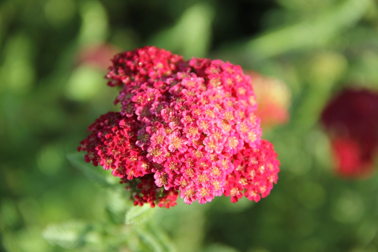 Achillea millefolium 'Red Velvet' zählt bis dato zu einer der farbstabilsten Sorten im umfangreichen Schafgarben Sortiment. Ihre reinroten Blütendolden auf hohen Stielen halten lange die Farbe ohne zu verblassen und sind herrliche Partner im sonnig-trockenen Staudenbeet. Zudem ist das feine, farnartige, aromatische Laub der Tausendblättrigen Schafgarbe von hohem Zierwert, so dass die Pflanze auch außerhalb der Blütezeit gestalterisch wertvoll ist.