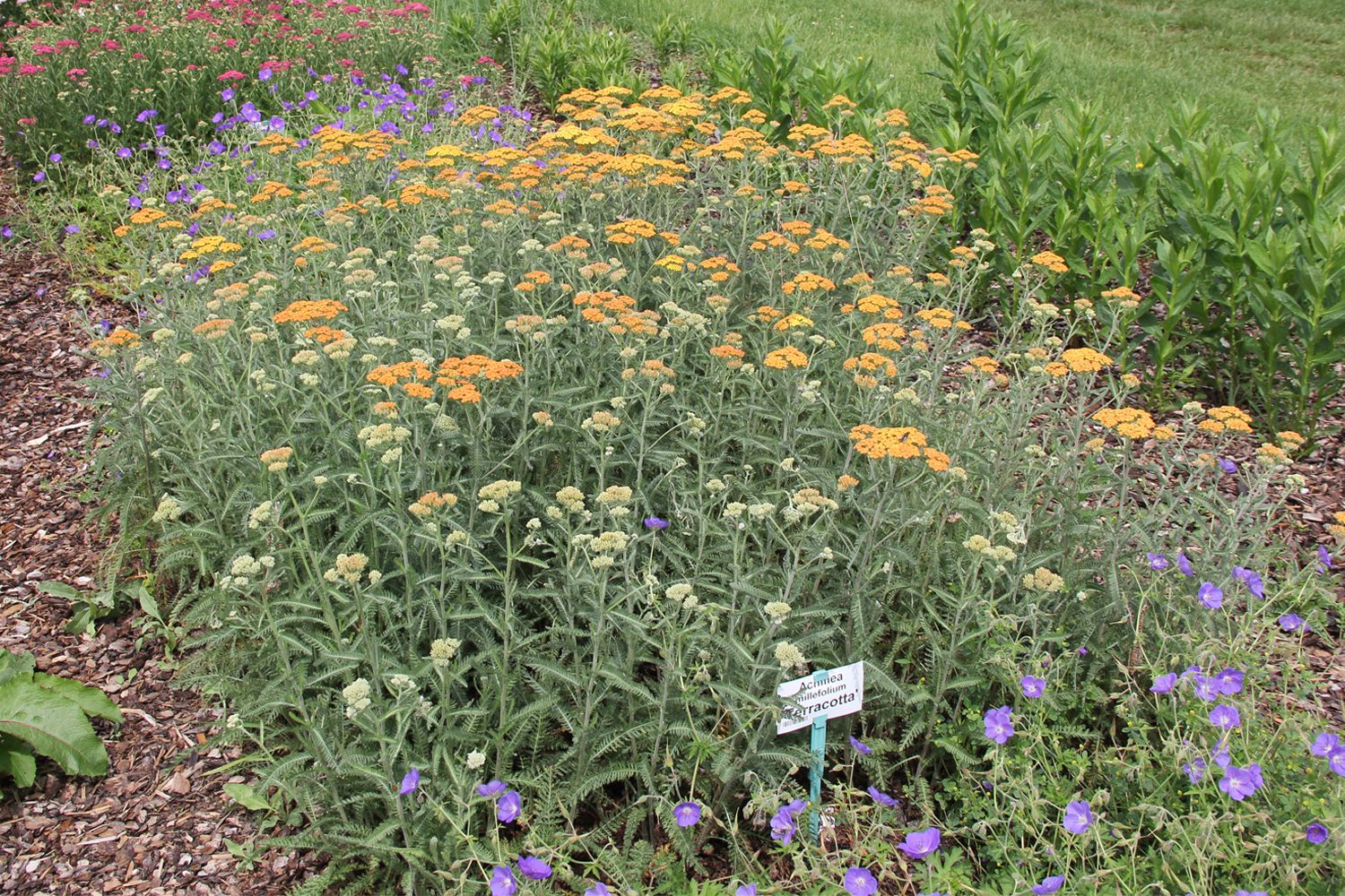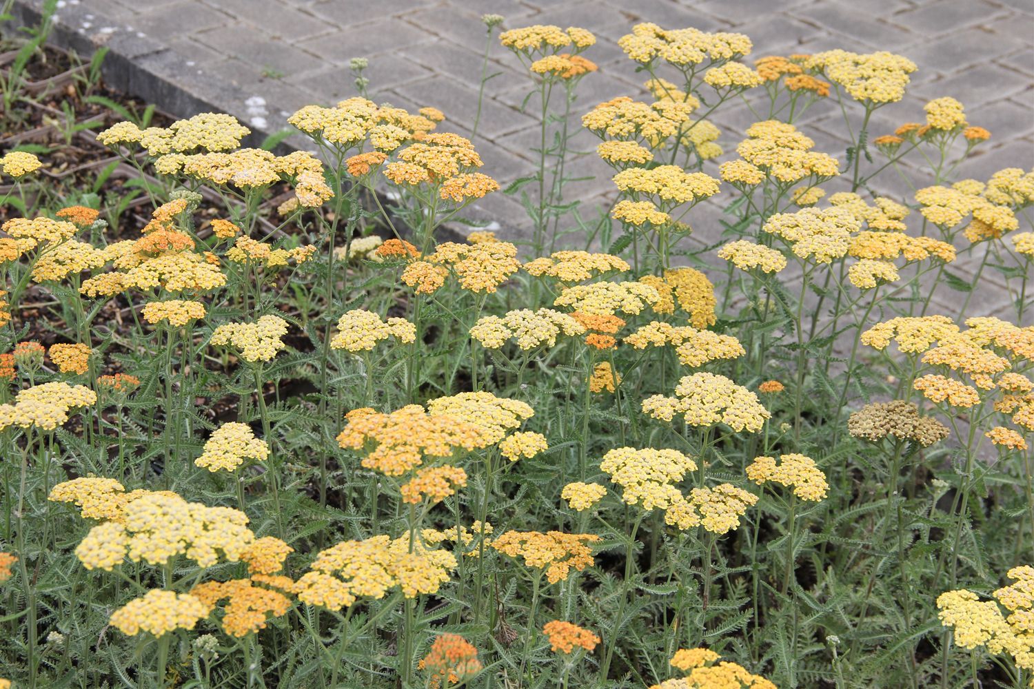 Achillea millefolium 'Terracotta' ist eine wunderschöne Schafgarbe, die terracotta-orange aufblüht und sich dann sanftgelb verfärbt. Sie ist niemals grell und auch im Verblühen nicht "schmuddelig".