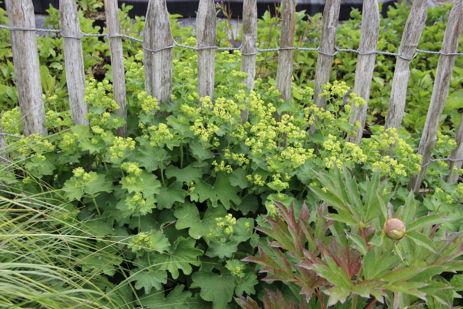 Da sich die gesunde Vitaltiät von Alchemilla mollis auch in reicher Selbstversamung zum Ausdruck bringt, ist ein baldiger Rückschnitt nach der Blüte dringend angeraten. Denn so nützlich und schön die dankbare Blatt- und Blütenschmuckstaude in sonnigen und halbschattigen Beeten auch sein mag, man möchte den Garten nicht bis zur völligen Einfallslosigkeit von ihr eingenommen sehen. Zudem ist eine radikale Rasur auch zur Erholung des Laubs dienlich, denn ein frischer Blattaustrieb sieht gleich viel erquicklicher aus als das, was nach der Blüte an Grün im Beet verbleibt.