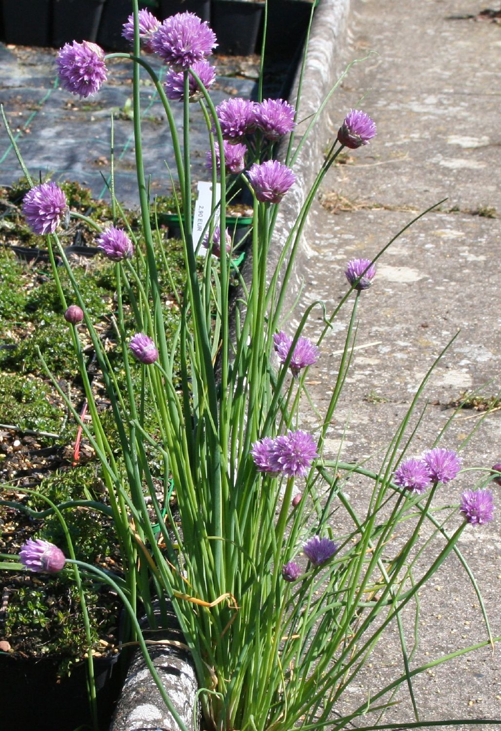 Der Schnittlauch ist mit seinen rot-violetten Blütenbällen auch eine nette Blütenstaude! Versuchen Sie doch einmal eine Blütenbutter, für die Sie 250 g zimmerwarme Butter mit 1 Prise Salz und einer guten Handvoll kleingehackter Blüten vermischen. Dann einige ganze Alliumblüten auf Alufolie legen, Butter darin einrollen und im Kühlschrank fest werden lassen. Das Rezept kann auch mit Thymian, Salbei, Ysop, Monarda, Bärlauch, Dianthus-Blüten oder einer Mischung aus selbigen hergestellt werden, probieren Sie es einfach aus!