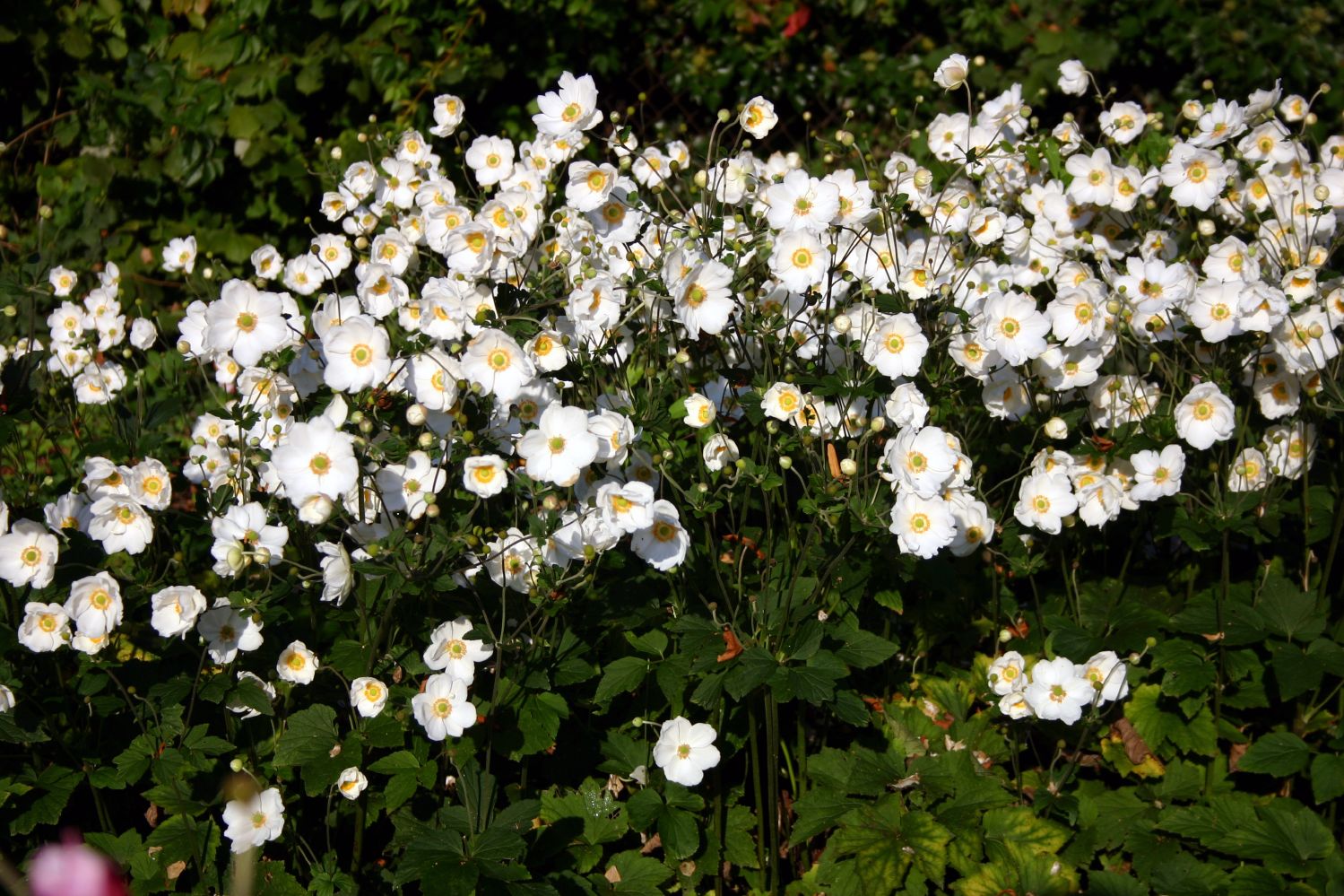 Um ihr die Eingewöhnung zu erleichtern, sollte unbedingt im Frühling gepflanzt und in den ersten Wintern mit Laub abgedeckt werden. Steht der schönen 'Honorine' dann ein humoser Gartenboden in halbschattiger Lage zur Verfügung, wird sie bereits im zweiten Jahr einen ansehnlichen Horst bilden und ihren Dank blütenreich zum Ausdruck bringen. Wer seinem Reinemachimpuls nach der Blütezeit im Herbst noch etwas Einhalt gebieten kann, den wird die Herbstanemone mit ihren vorwitzigen, fluffigen Samenständen überraschen, die sich so gut mit den Strukturen der Gräser vertragen.