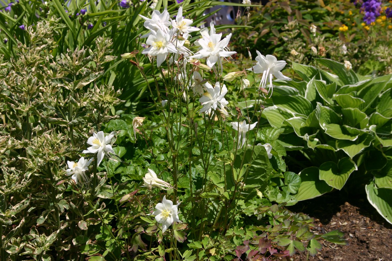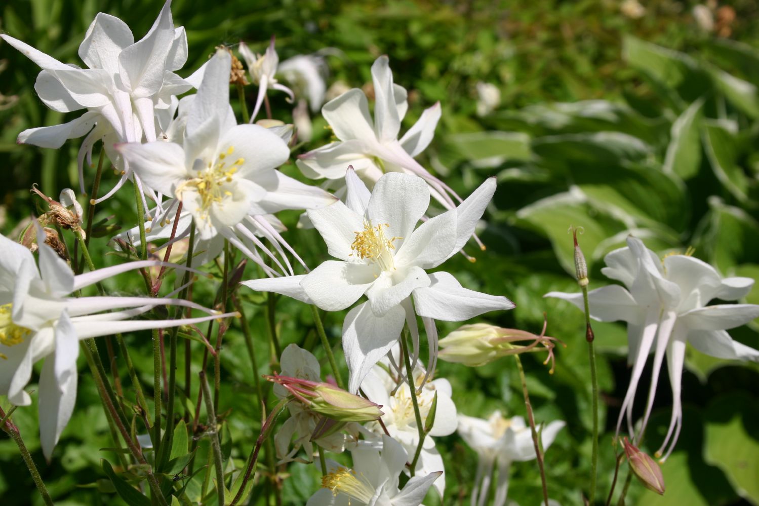 Aquilegia "Kristall" zaubert Licht und Leichtigkeit in dunklere Gartenecken. Diese edel wirkende Akelei trägt ihre reinweißen, glockenförmigen und langgespornten Blüten auffallend aufrecht. Ihre Blütezeit ist von Mai bis Juni und dient Bienen und Hummeln als Nahrungsquelle. Aber auch ihre frischgrünen gelappten Blätter machen Aquilegia "Kristall" zu einer sehr fein wirkenden Staude. Sie wird ca. 60 cm hoch, gedeiht perfekt an sonnigen bis halbschattigen Standorten auf humosem, eher frischem Gartenboden. Sie ist außerdem gut frostverträglich. Sehr exquisit wirkt Aquilegia "Kristall" auch in der Vase.