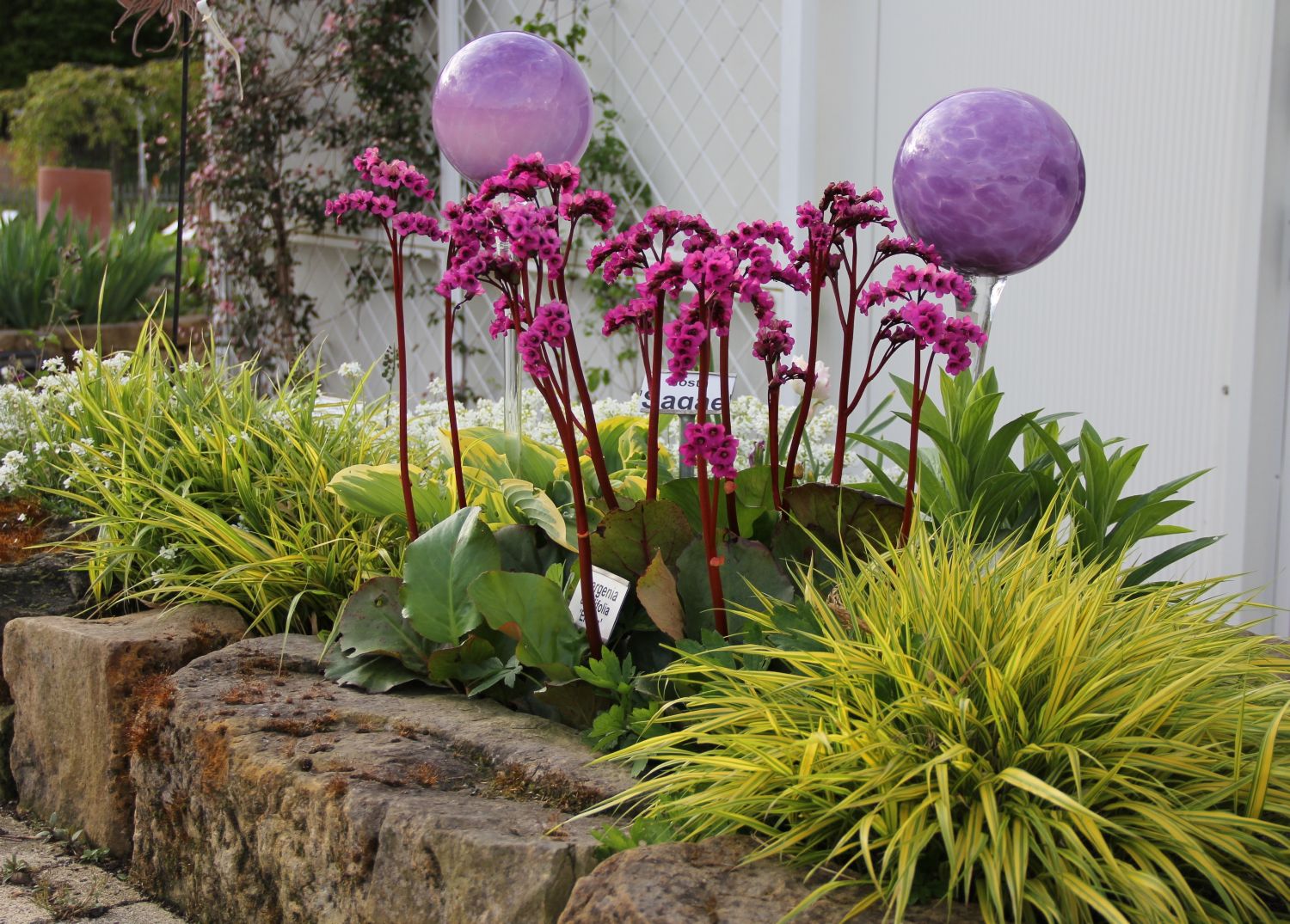 Eine kleine Attraktion überrascht die Besucher der Gärtnerei, wenn sie im Frühling durch unseren Kiesgarten Beth Chatto's Corner spazieren. Neben den limonengrünen Blütenständen der Gold-Wolfsmilch leuchten plötzlich die dicht gepackten, purpurvioletten Blütenglocken von Bergenia 'Eroica' auf. In vollendeter Eleganz stehen sie hoch über dem formschönen Laub und bilden damit das saisonale Hightlight einer in jeglicher Hinsicht empfehlenswerten Gartenstaude.