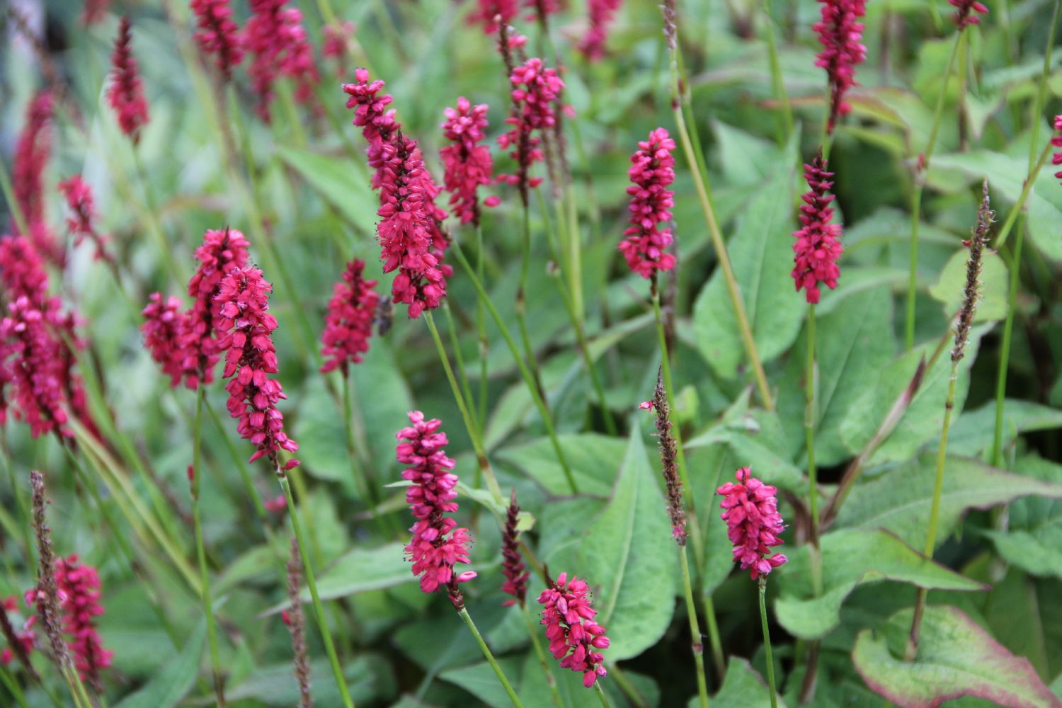 Schöne Pflanzpartner im Beet sind z.B. Gartenschmiele (Deschampsia cespitosa), Frikarts Gartenaster (Aster frikartii 'Mönch) oder Sonnenbraut (Helenium), deren hochbeinige "Füße" der Knöterich optimal kaschiert.