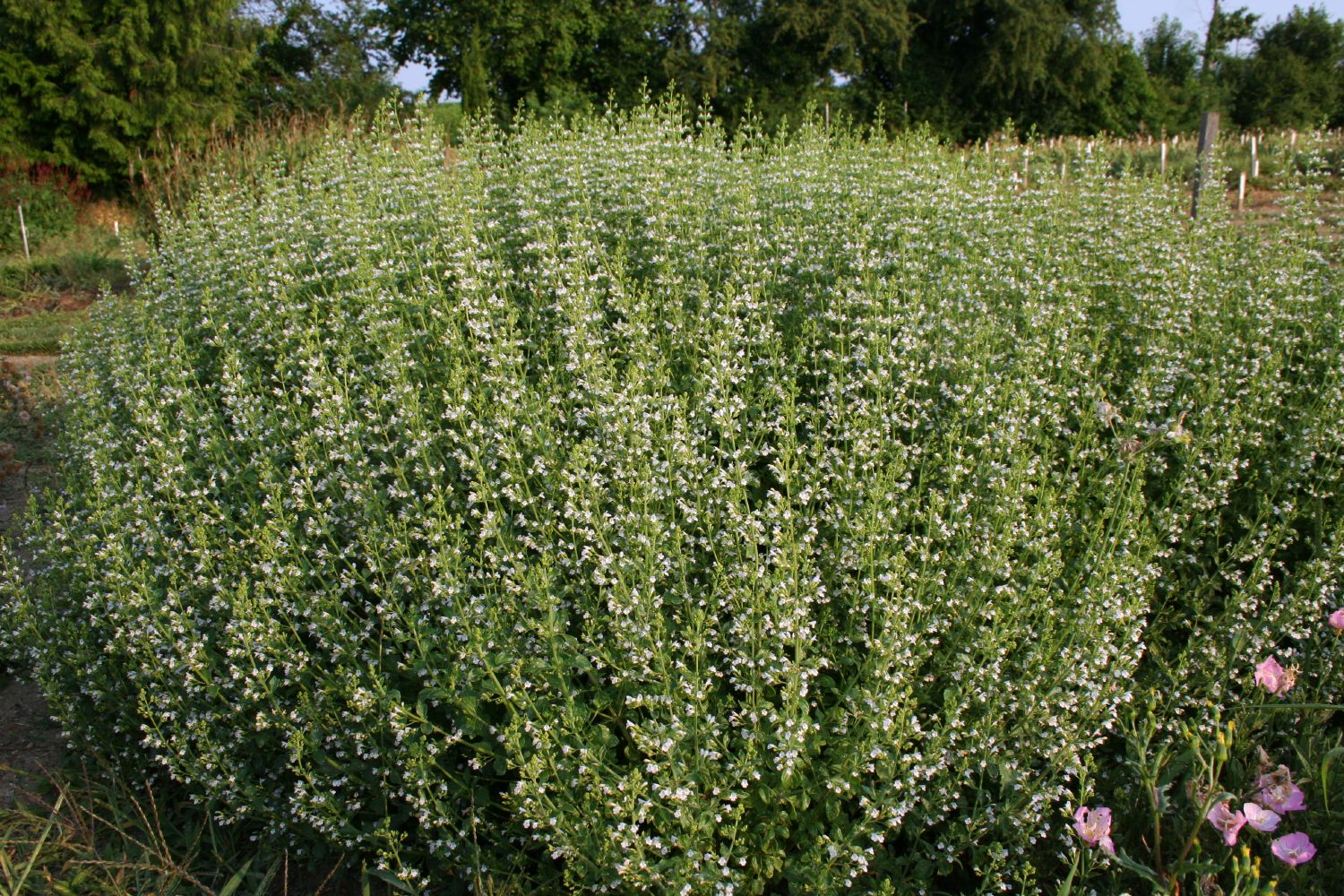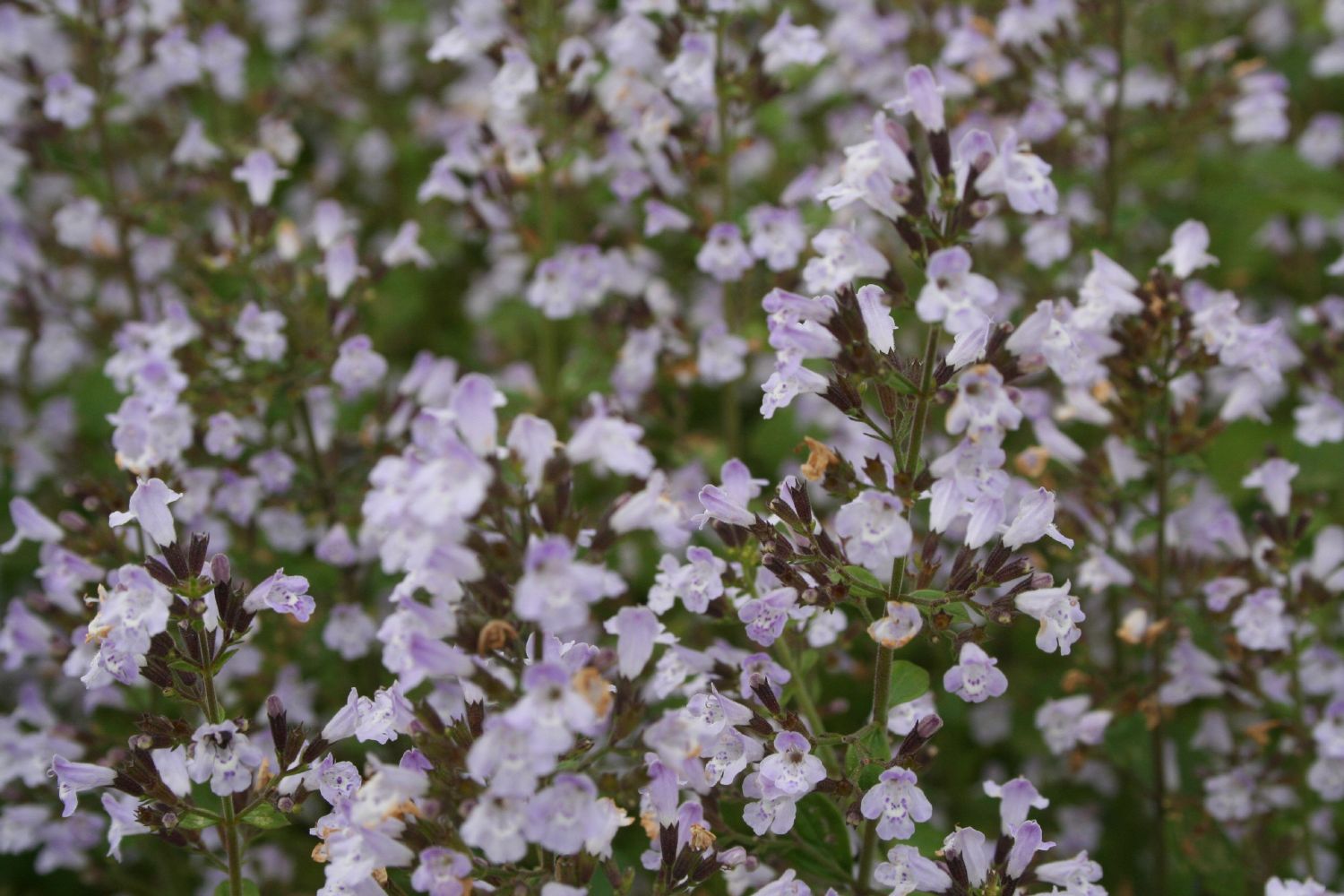 Calamintha nepeta ssp. nepeta, auch als Steinquendel oder Bergminze bekannt, ist eine mehrjährige, aromatisch duftende Staude, die mit ihrer zarten Erscheinung und Robustheit punktet. Von Juli bis Oktober schmückt sie sich mit zahlreichen kleinen, hellvioletten bis fast weißen Lippenblüten, die über dem dichten, buschigen Laub zu schweben scheinen. Die Blätter duften angenehm nach Minze und machen die Pflanze zu einem echten Sinneserlebnis im Garten.