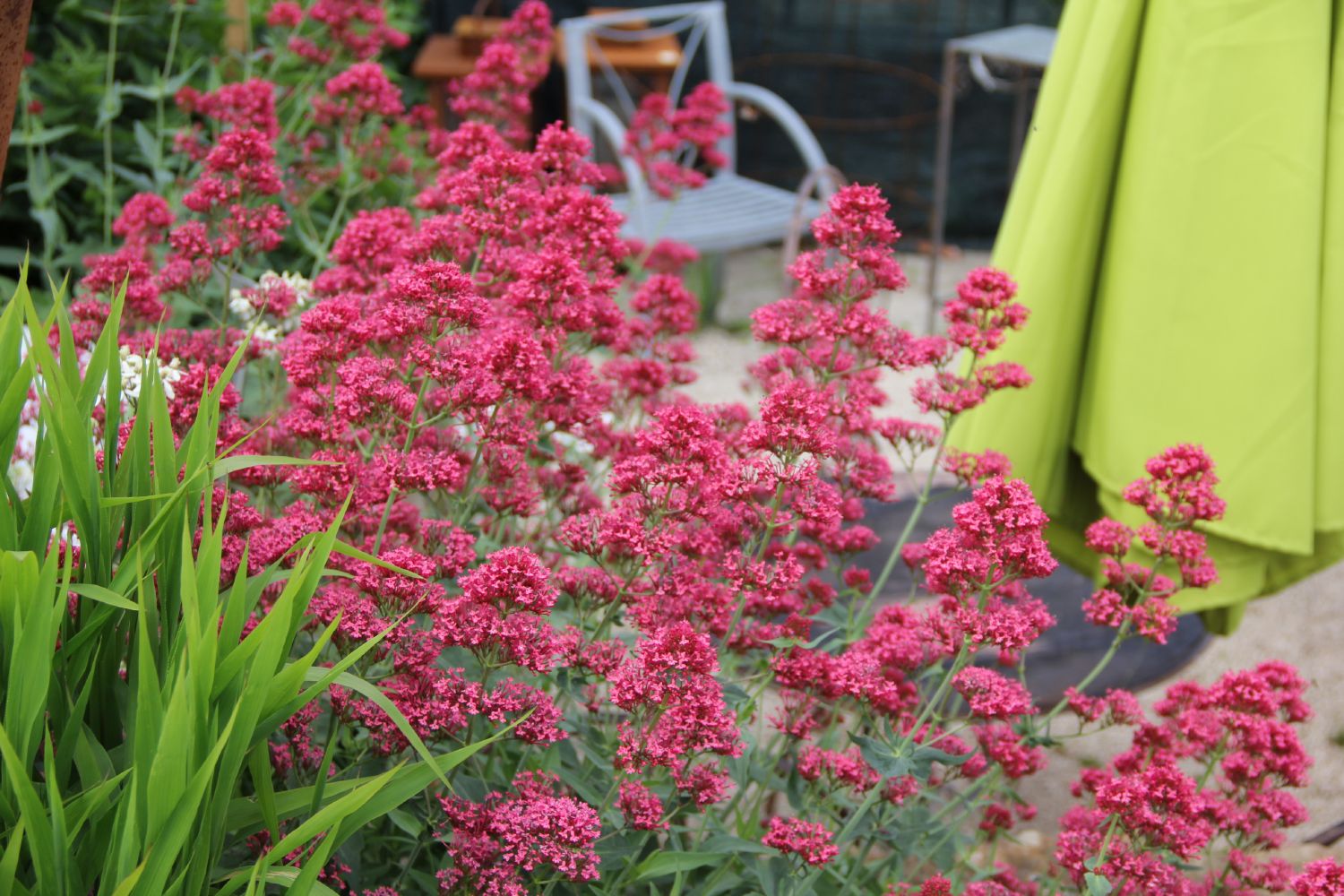 Als Schwertlilien-Begleiter ist der rote Scheinbaldrian eine ebenso glückliche Wahl wie als Streupflanze zwischen Strauchrosen, deren opulente Blütenpracht herrlich aus dem feineren Blütennebel der Spornblumen hervorsticht.
