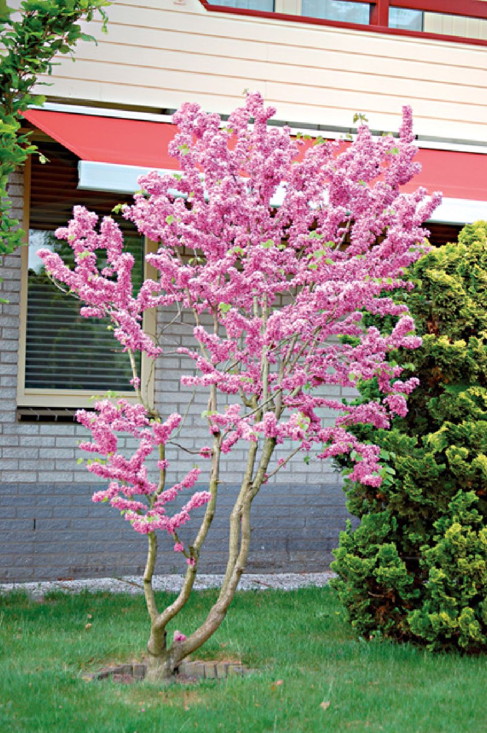Cercis chinensis 'Avondale' hat einen aufrechten und kompakten Wuchs. Dieser Judasbaum wird bis zu 2 m hoch und gilt als Kleinbaum. Er hat sehr dekorative, herzförmige grüne Blätter mit einer schönen gelben Färbung im Herbst. Avondale ist ein reichblühender Zierstrauch, der sich sehr gut für kleine Gärten eignet.