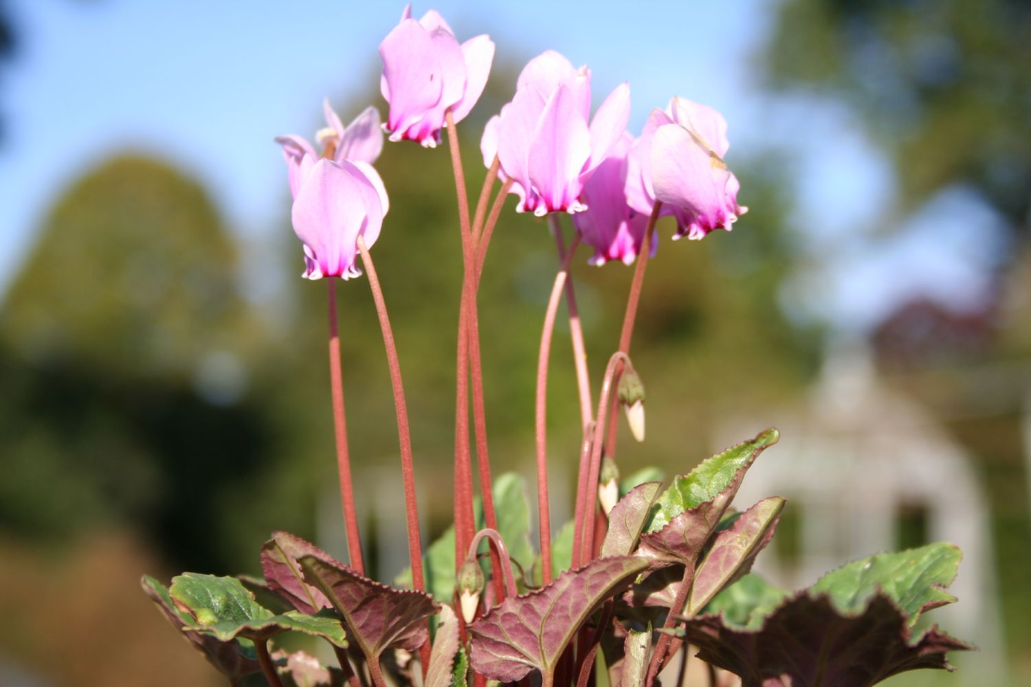 Efeuartige, wintergrüne Blätter, rosa Blüten. Die Knollen werden 5-7 cm tief gepflanzt und über Winter mit etwas Laubmulch bedeckt. In strengen Wintern die Blüten locker mit Reisig schützen. Nicht dazwischen hacken, da sich Cyclamen selbst aussäen.
