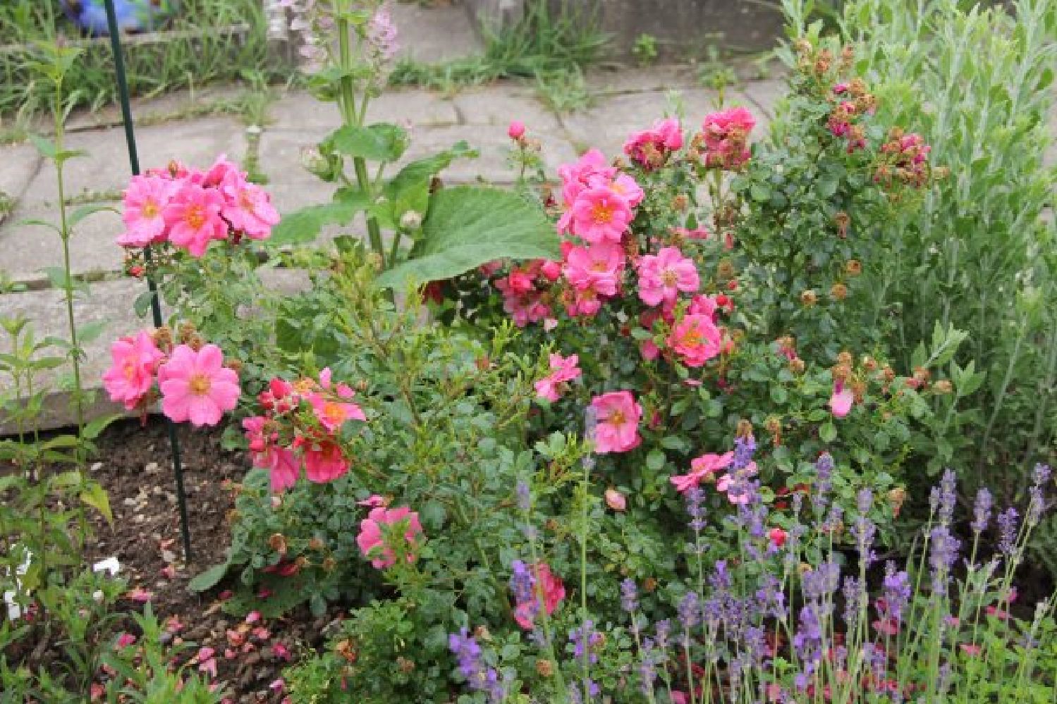 Auf nur 2,5 m² lässt sich die exklusive Beet-Idee "Duftende Bienenweide" anpflanzen, das für hungrige Insekten von Frühjahr bis Herbst einen reich gedeckten Tisch bereithält. Neben der neuen Rosenzüchtung "Bienenweide®-Rose", von der renommierten Rosenschule Tantau, die mit einer Vielzahl von einfachen Blütenschalen eine beliebte Nektarquelle ist, lebt dieses Beet von etlichen aromatischen Lippenblütlern wie Lavendel, Duftnessel, Katzenminze, Steinquendel, Blauraute, Majoran und Thymian.