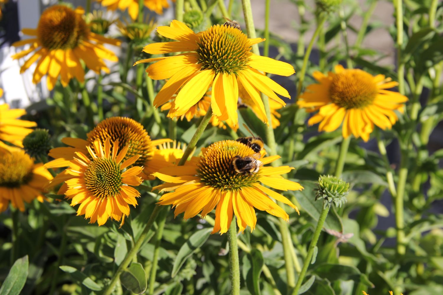 Echinacea 'Kismet® Yellow' ist sowohl für naturnahe Pflanzungen mit Gräsern als auch leuchtstarke Farbkombinationen in ausgefeilten Beeten geeignet. Perfekt etwa mit Blau, Violett oder Rot. Auch die Insektenwelt, allen voran Bienen und Hummeln, profitieren vom kleinen Blütenwunder, das über Monate für eine gut gedeckte Nektartafel sorgt.