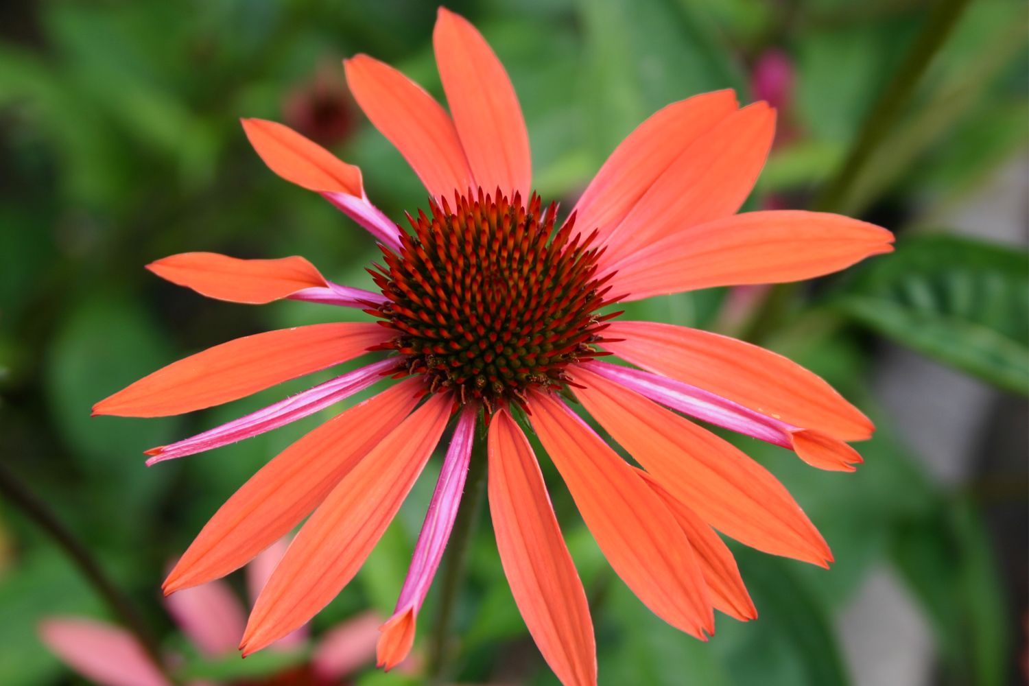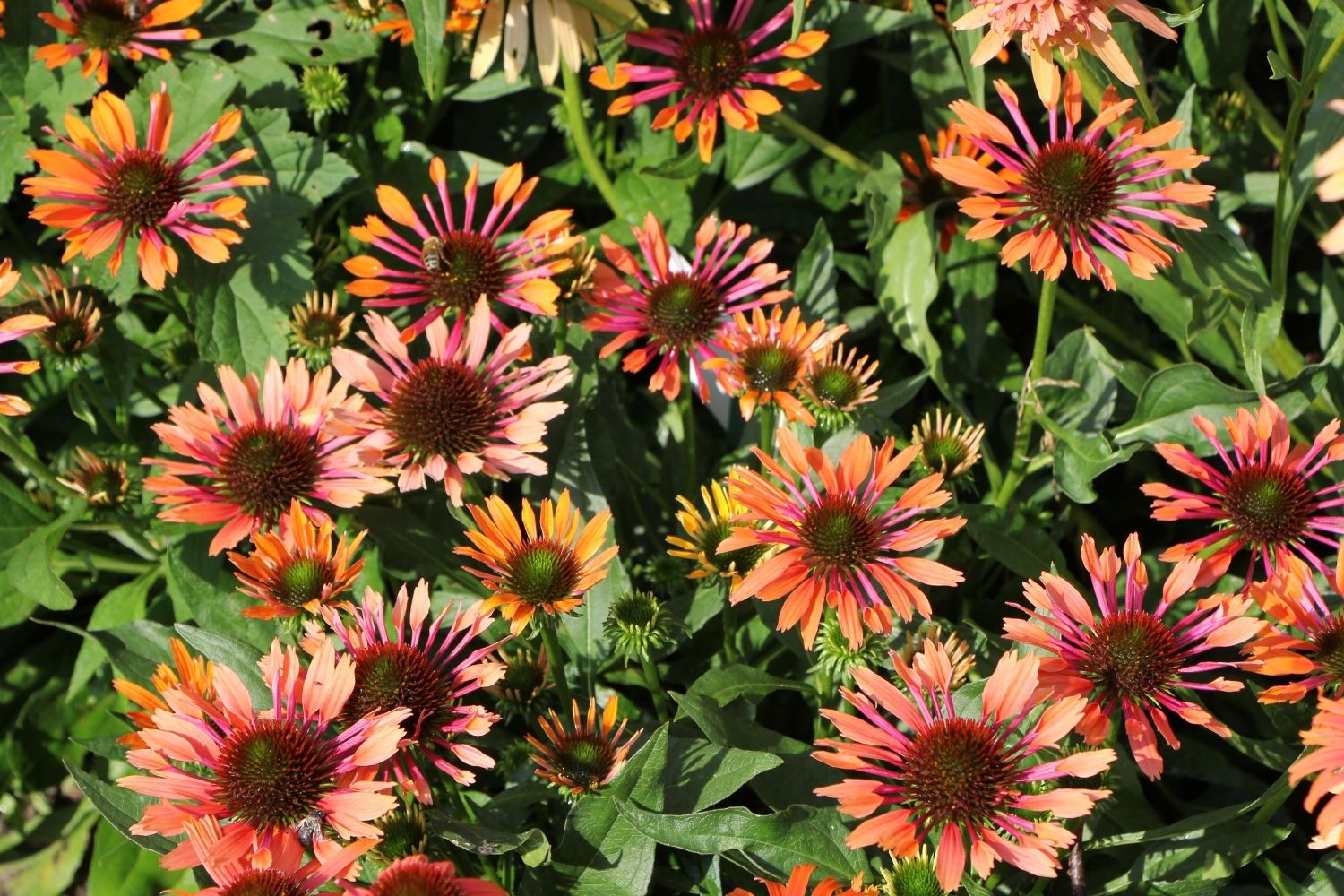 Die Blüten von Echinacea 'Orange Pearl' ® sind jedoch nicht nur für seine Besitzer eine Augenweide. Kaum haben sich die Blüten vollends geöffnet, werden sie sogleich von emsigen Hummeln und Bienen besucht, die hier leicht zugänglichen Nektar finden. Und das über Monate hinweg, denn Echinacea 'Orange Pearl' ® erfreut bis in den September hinein.
