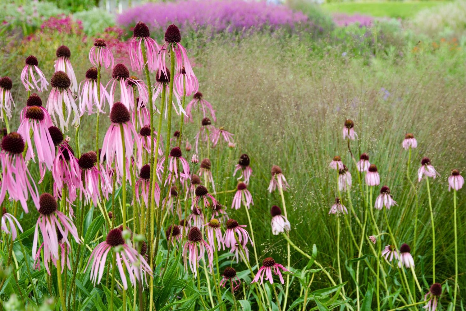 Verwenden lässt sich Echinacea pallida perfekt für naturnah anmutende Beete, z.B. in Kombination mit Gräsern wie Federgras (Stipa tenuissima), Verbenen, Prachtscharten (Liatris) oder Mannstreu (Eryngium yuccifolium). Um von vorn herein für genügend Eindruck zu sorgen, lohnt es sich, gleich mehrere Exemplare dieses Scheinsonnenhuts locker verteilt zu pflanzen.