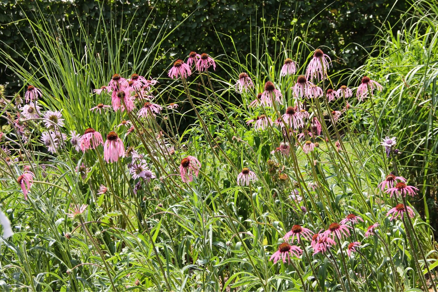 Trotz ihres filigranen Erscheinungsbilds ist Echinacea pallida "tough" im Nehmen! Magerer, trockener Boden und Hitzesommer können der schönen Staude nichts anhaben, denn dank ihrer Pfahlwurzel kommt sie auch in langen Trockenphasen noch an Wasser, wenn andere Pflanzen bereits zu schwächeln beginnen. Für jahrelange Freude an Echinacea pallida ist es nur wichtig, für gute Drainage im Boden zu sorgen, so dass die Pflanze nie staunass steht.