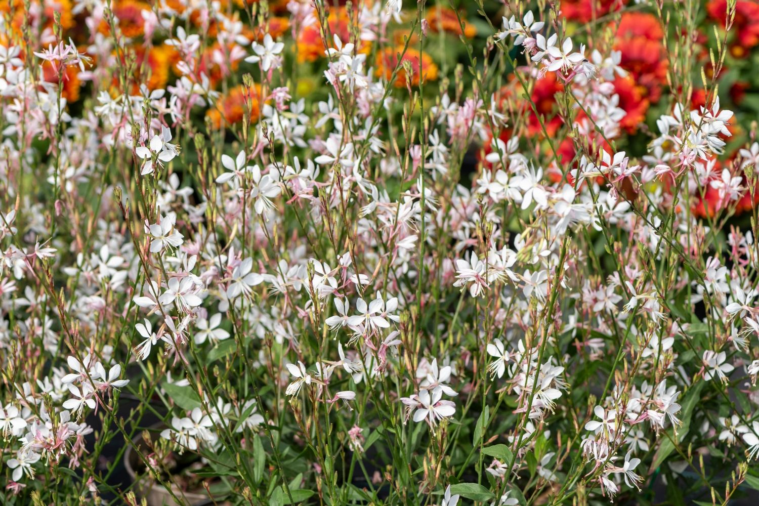 Ein kompaktes kleines Blütenwunder unter den Prachtkerzen ist Gaura lindheimeri 'Graceful White', die sich durch eine geringe Höhe von nur 40 cm auszeichnet. Dadurch eignet sie sich ideal als Dauerblüher im Vordergrund sonniger Beete, aber auch für Kübel und Balkonkästen auf Balkon und Terrasse.