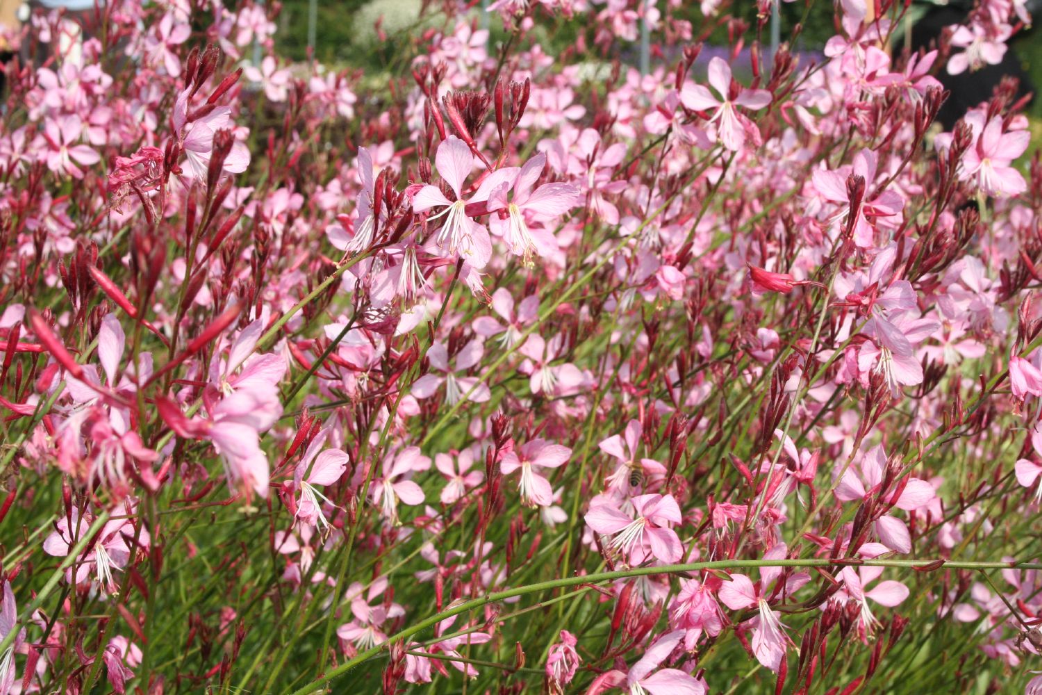 Ihr filigranes Erscheinungsbild und die monatelange Blütezeit machen Gaura lindheimeri 'Siskiyou Pink' zu einer perfekten Pflanzpartnerin für Schwertlilien und Yucca. Sie passt wunderbar zu mediterranen Halbsträuchern wie Lavendel oder Purpursalbei und konspiriert mit Patagonischem Eisenkraut und zarten Ziergräsern in der Erzeugung märchenhafter Schleiereffekte, die dem Beet gleichzeitig Tiefe und Leichtigkeit schenken.