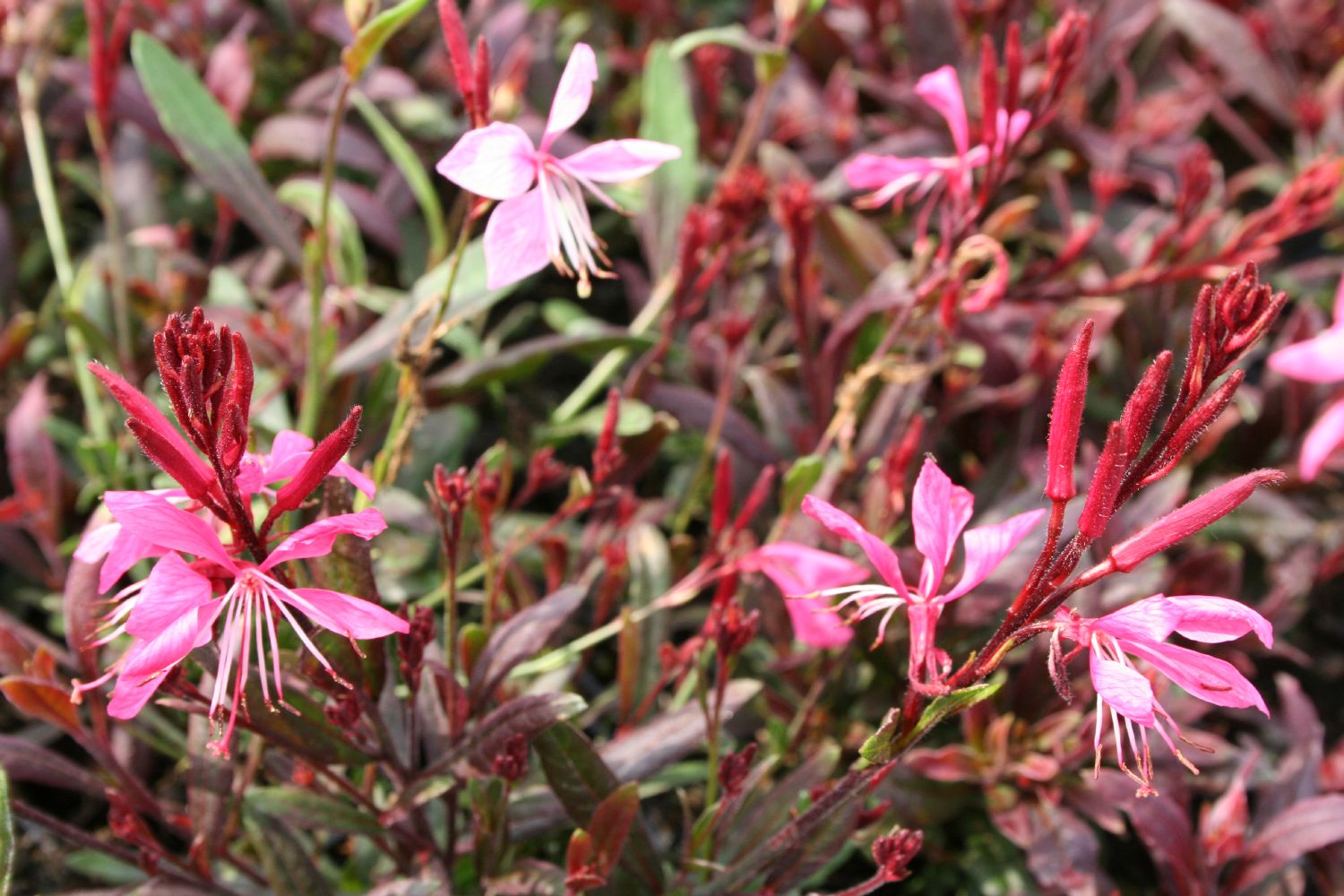 Deutlich niedriger als viele andere Prachtkerzen, ist diese kompakte, neue Sorte ideal für kleinere Pflanzflächen und Tröge geeignet. An ihren filigranen, dunkelroten Stielen sitzen unzählige kleine Schmetterlingsblüten in kräftigem Rosa, im Farbton noch intensiver als bei der Schwesternsorte 'Siskiyou Pink'.