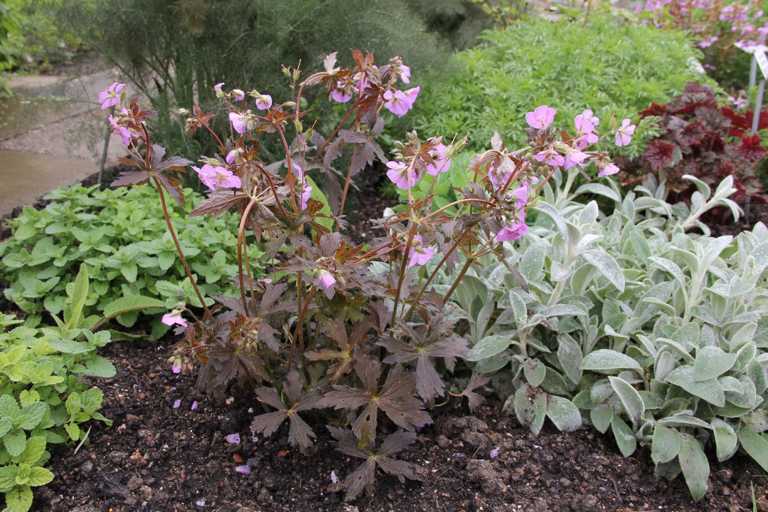 Einer der schönsten Storchschnäbel! Die rosa Blüten wirken sehr harmonisch zum kaffeebraunen Laub. Auch nach der Blütezeit als Blattschmuckstaude wertvoll.