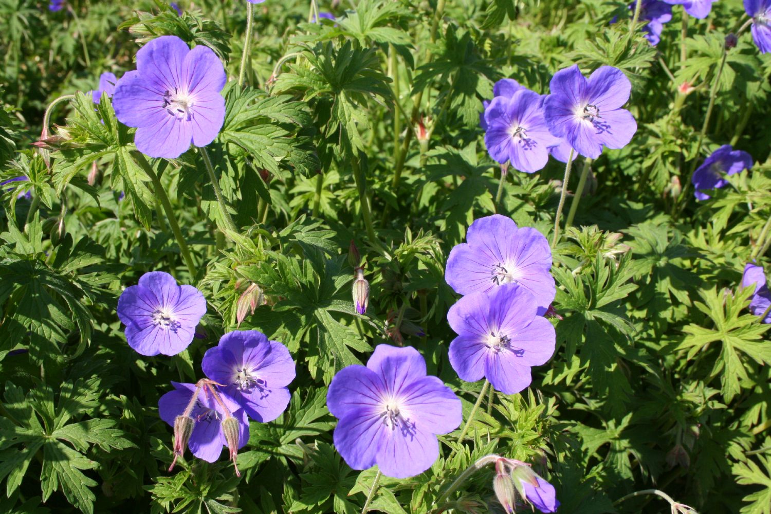 Große violettblaue Blütenschalen, gilt als einer der besten blaublühenden Storchschnäbel, wüchsig und reichblühend. Durch Nachblüte im Herbst wertvoll.
