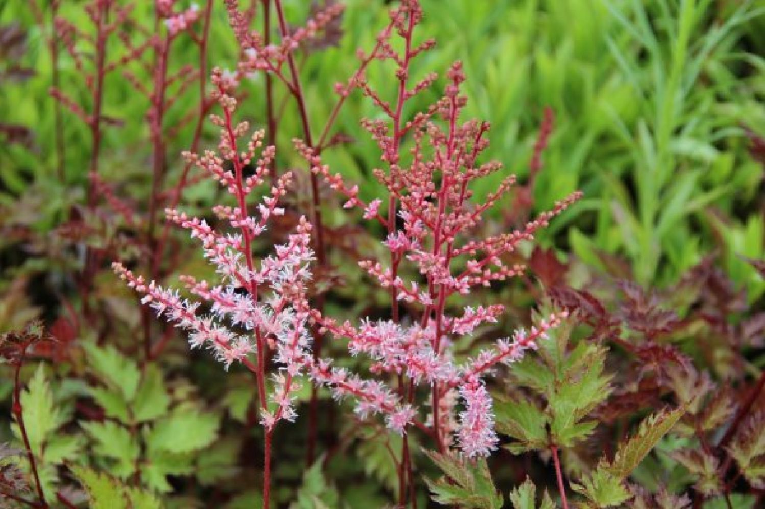 Benannt nach den ikonischen Entertainerinnen Japans bezaubert das Beetensemble „Geisha“ mit einer exquisiten Pflanzenauswahl, die sich durch stilvolle Blüten und malerisches Laub auszeichnet. Ein filigranes, frischgrünes Japanisches Berggras wird hier umgeben von blutroten Purpurglöckchen, duftendem Waldphlox, metallisch schimmerndem Regenbogenfarn, weißgrüner Funkie sowie zartrosa Prachtspiere mit dunklem Laub.