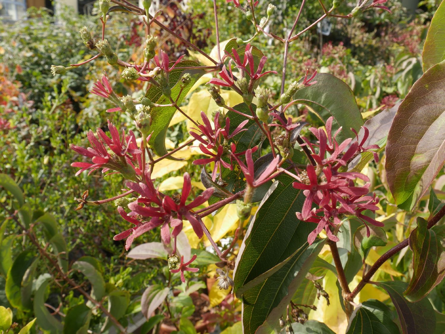 Die Blüten verströmen einen angenehmen Duft nach Honig und werden gern von Insekten angeflogen. Auch im Abblühen ist der in China beheimatete Sieben-Söhne-des-Himmels-Strauch bezaubernd, denn die alten Blütenstände behalten bis zuletzt die leuchtend roten, sternförmigen Kelchblätter der alten Blüten.