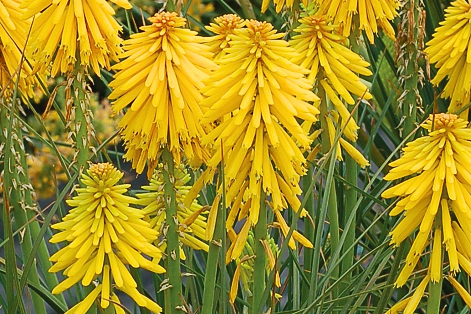 Fackellilien verbreiten exotisches Flair in sommerlichen Beeten und blühen über Monate. Keine Ausnahme hiervon bildet die kompaktwachsende Sorte Kniphofia 'Banana Popsicle', die von Juli bis Oktober mit einem steten Strom reingelber Blütenbürsten aufwartet und fröhlich-leuchtenden Charme versprüht.