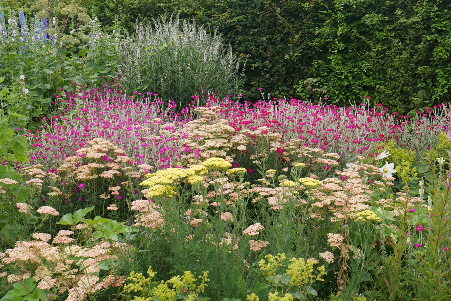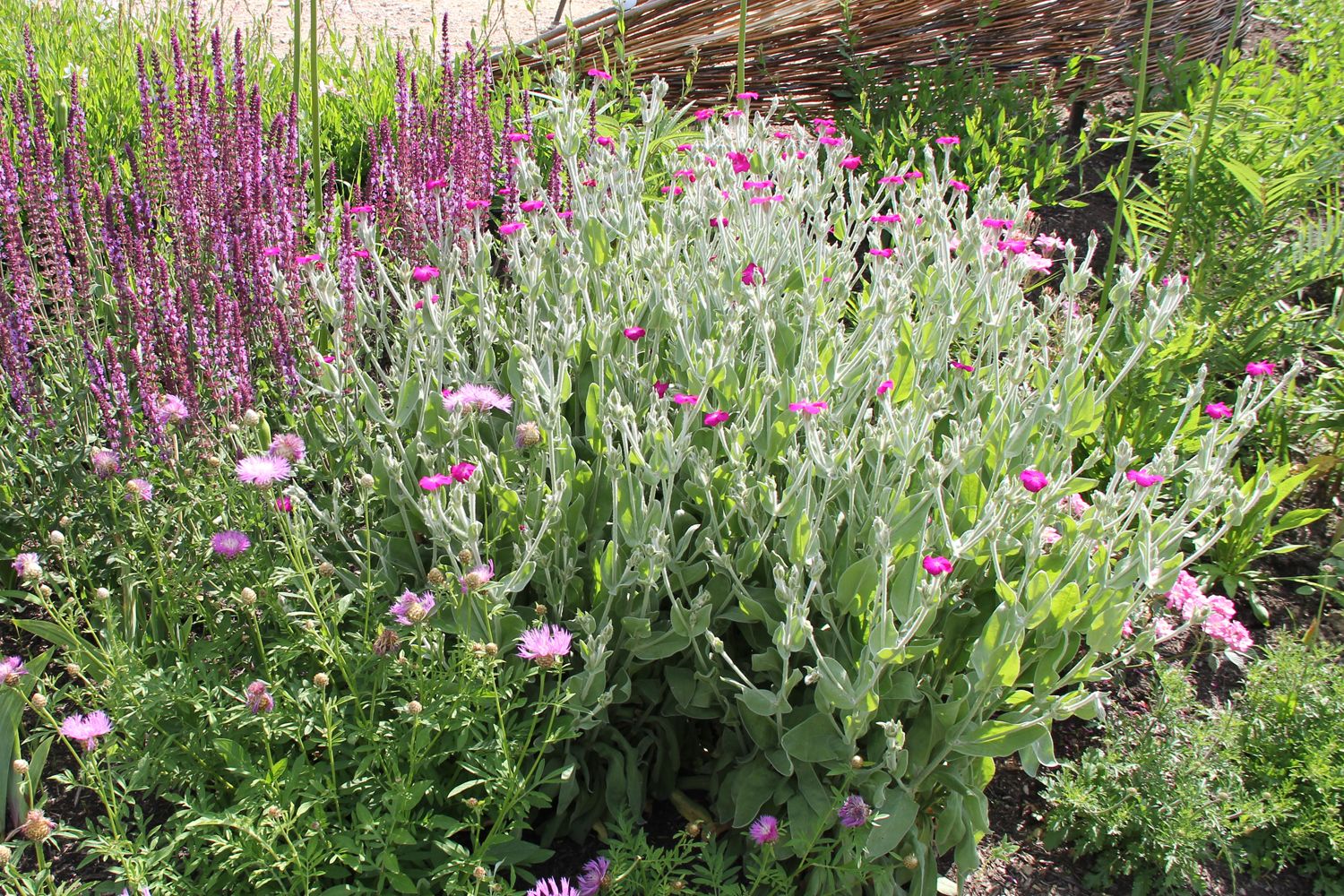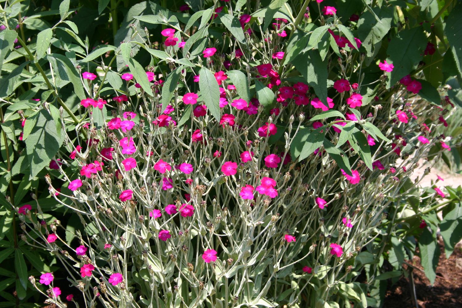Umgeben von dunkellaubigen Fetthennen, mattenbildendem Wollziest und statuesken Königskerzen ist Lychnis coronaria ein phantastischer Schnellzünder, dessen haltlose Blühfreude auch den Insekten zugute kommt.