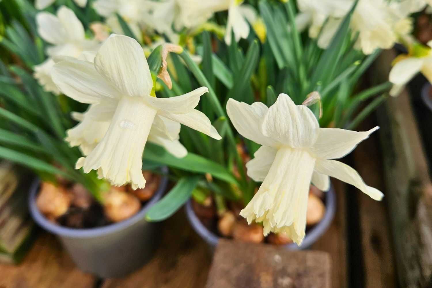 Narcissus 'Ice Baby' ist eine elegante und zugleich ausdrucksstarke Trompeten-Narzisse, die mit ihrer reinen Farbgebung begeistert. Ihre makellos weißen Blütenblätter umrahmen eine ebenfalls weiße, leicht cremige Trompete, die im Verlauf der Blütezeit dezent aufhellt. Dieser monochrome Look verleiht der Sorte eine besonders edle Ausstrahlung und macht sie zu einem stilvollen Blickfang im Garten. Mit einer Wuchshöhe von etwa 25 cm eignet sich Narcissus 'Ice Baby' hervorragend für den Beetvordergrund, für Frühlingsrabatten und als edle Schnittblume.