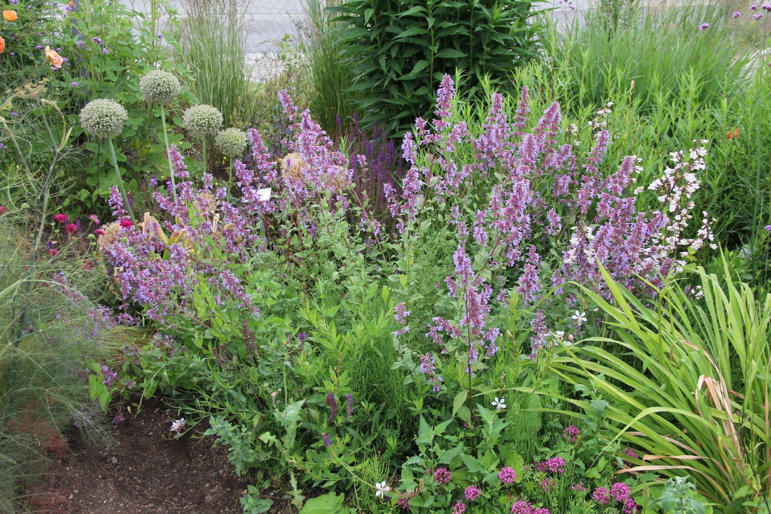 Ob als Insektenweide, als Duft- oder als Schnittstaude, als Rosenbegleiter oder unkomplizierter Dauerblüher in der gemischten Staudenrabatte, 'Bramdean' bewährt sich an sonnigen Standorten in einer Vielzahl von Pflanzkombinationen. So etwa zwischen Strauchrosen und Rispenhortensien, mit Euphorbia polychroma, Geranium psilostemon, Helianthus microcephalus, Thalictrum 'Elin' oder der dunklelaubigen Clematis recta 'Purpurea'. Am Besten gedeiht die großblütige Katzenminze auf nicht zu trockenen Böden, wo sie üppige Bestände ausbilden kann. Im Juli nach der ersten Blüte bodennah zurückgeschnitten, remontiert Nepeta grandiflora 'Bramdean' im Spätsommer und bildet dann eine feine Note zwischen herbstfärbenenden Gräsern und frühen Astern.