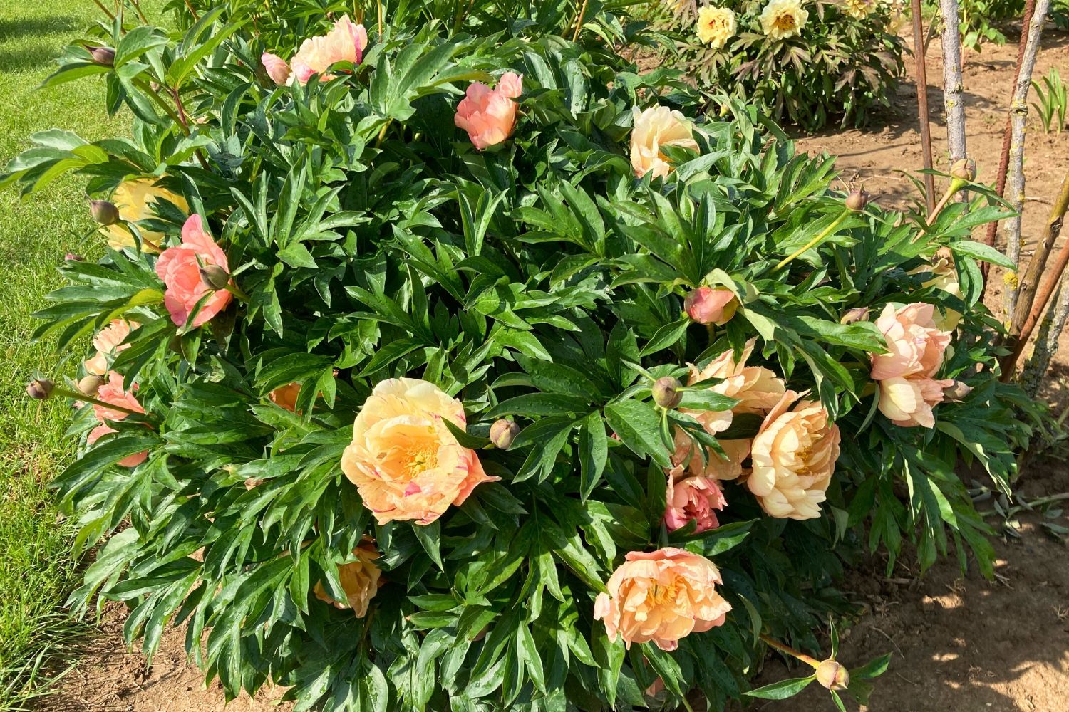 Intersektionelle Pfingstrose gedeihen am besten an einem sonnigen Standort. An den Boden stellt die robuste Staude nur eine Bedingung: Er darf nicht staunass sei. Im Herbst schneidet man die Pflanze Handbreit über dem Boden zurück und entsorgt das alte Laub. So vermeidet man, ähnlich wie bei Rosen, etwaige Pilzprobleme.