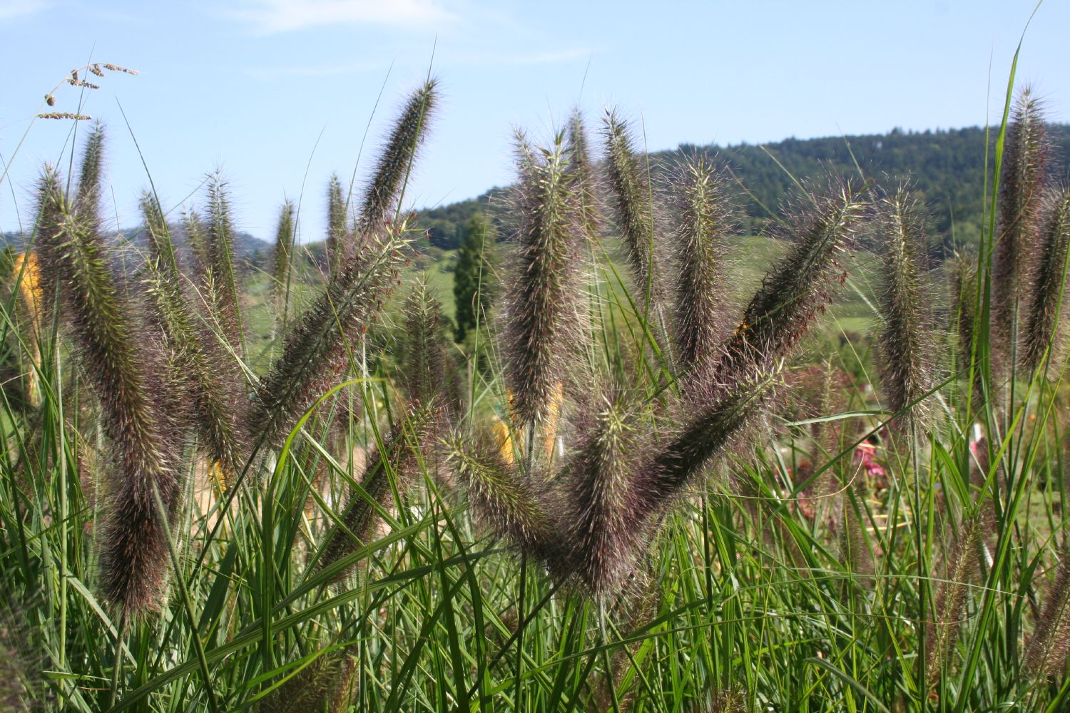 Innerhalb unserer Lampenputzer-Familie wartet Pennisetum alopecuroides var. viridescens mit den dunkelsten, dichtesten und damit auffallendsten Blütenwalzen auf. Folgerichtig zum aufstrebenden, standfesten, ja skulpturalen Habitus dieser wertvollen Unterart, deren großer, kuppelförmiger Horst in seinem Gleichmaß, seiner Klarheit und seinem kraftvollen Auftritt einen festen Ankerpunkt in der Rabatte bildet.