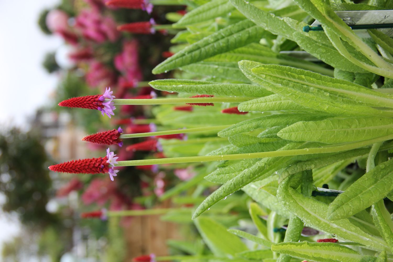 Ungewöhnliche, von den anderen Primeln im Blütenstand abweichende Art mit roter spitzer Ähre mit lilafarbenen glockigen Blüten. Reizend anzusehen. Ein Schmuckstück für den humosen Standort, z.B. im Rhododendrongarten.