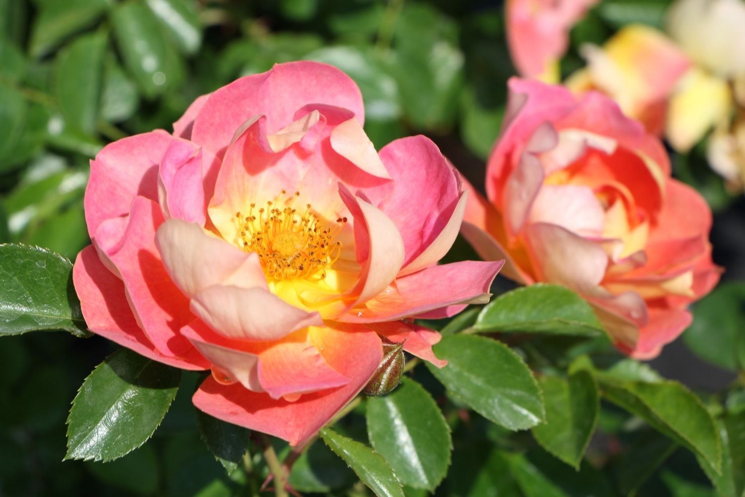 Die Serie der Bieneneweide®-Rosen zeichnet sich durch kompakten Wuchs und einfache bis halbgefüllte Blüten aus, an denen Insekten reichen Nektar finden. Die Rose 'Bienenweide' ® mango entzückt dabei ab Juni mit reichem Blütenflor und guter Nachblüte.