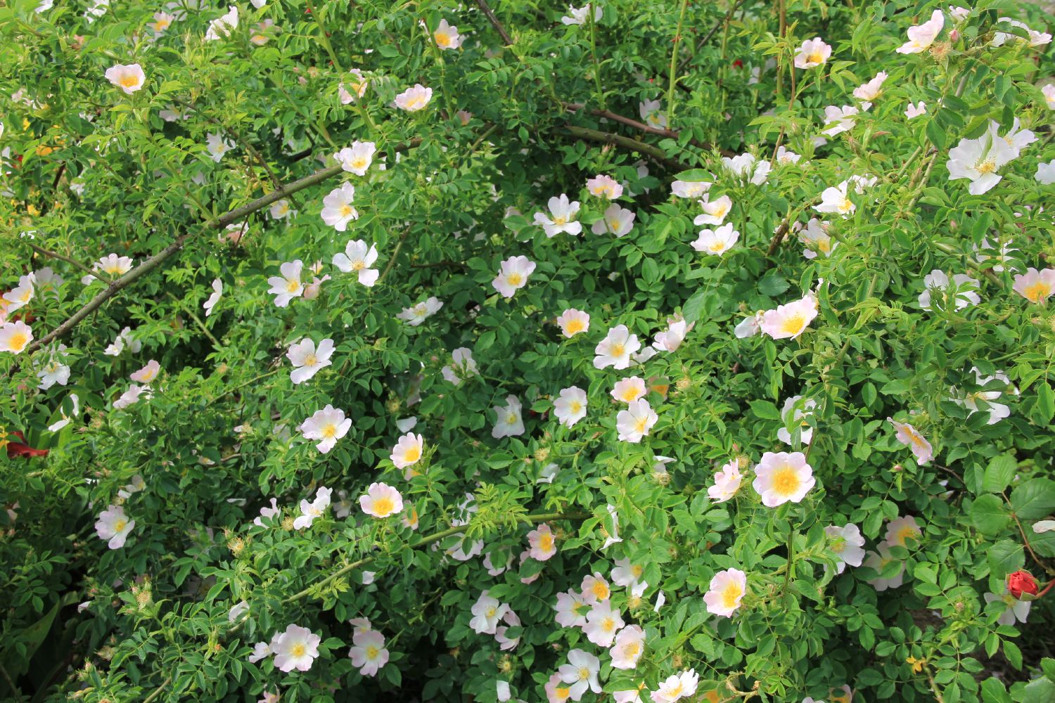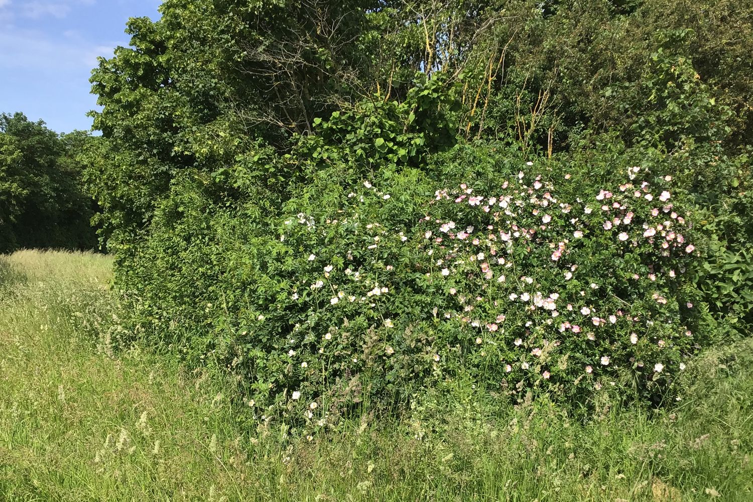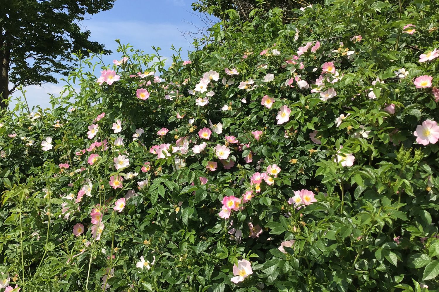 Die Hundsrose (Rosa canina) mit ihren einfachen, zartrosa Blütenschalen ist der Inbegriff einer Wildrose und lässt sich sowohl für Blühhecken als auch als Solitärgehölz im Garten einsetzen. Hier sollte man ihr jedoch genügend Raum geben, denn Rosa canina kann im Alter einen üppigen Strauch von bis zu 3 m Höhe und einem Durchmesser von 2 m erreichen.