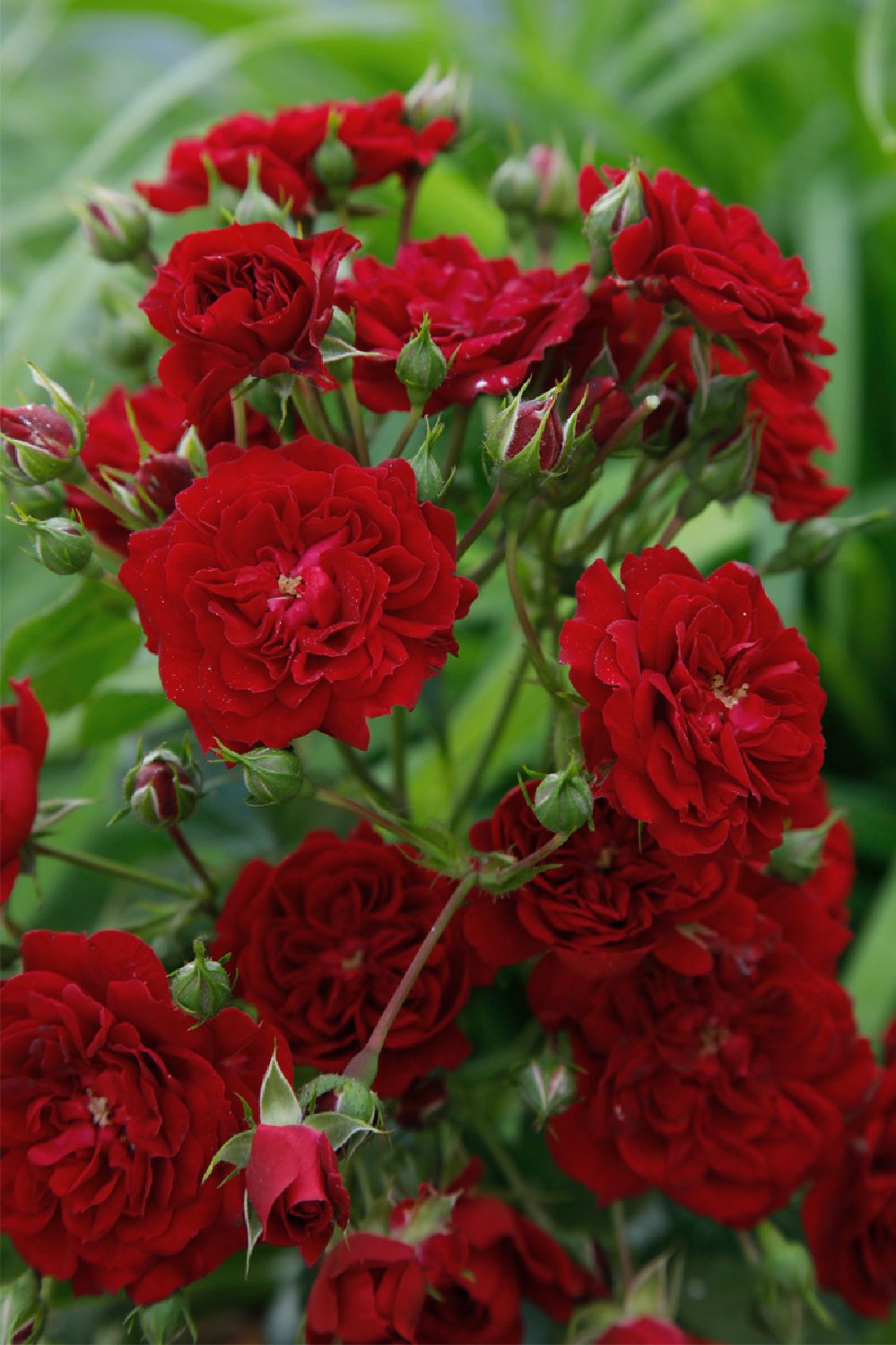 Liebhabern blutrot blühender Rosen sei diese kompakte Ramblerrose ans Herz gelegt. Rose 'Crimson Siluetta' ® erfreut im Sommer über Wochen mit kleinen karminroten, gefüllten Blüten in reichen Dolden.