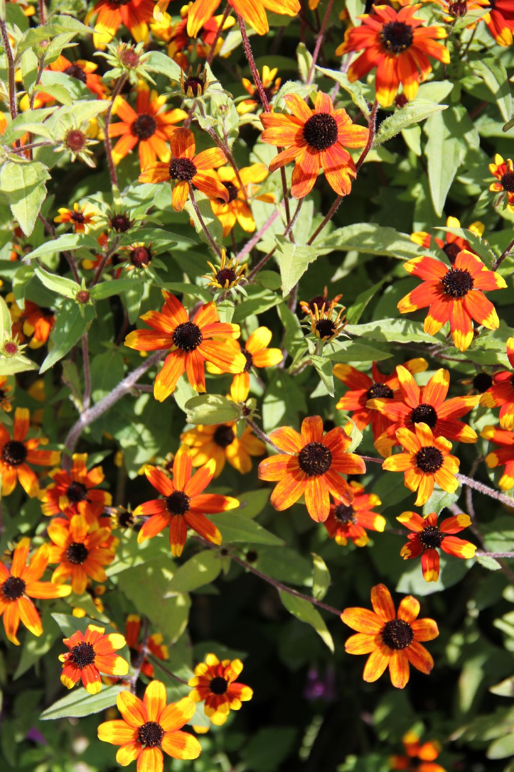 Mit ihrem herrlichen Farbspiel aus warmen Gelb-, Orange- und Rottönen bereichern die hübschen, Körbchenblüten von Rudbeckia triloba 'Prarie Glow' ab August sonnige Rabatten. Im Zusammenspiel mit Herbstastern und Staudensonnenblumen, Sonnenbräuten, Vernonien und Präriegräsern wie Panicum virgatum sorgt die wertvolle Spätblüherin für einen farbenfrohen, blütenreichen Saisonabschluss.