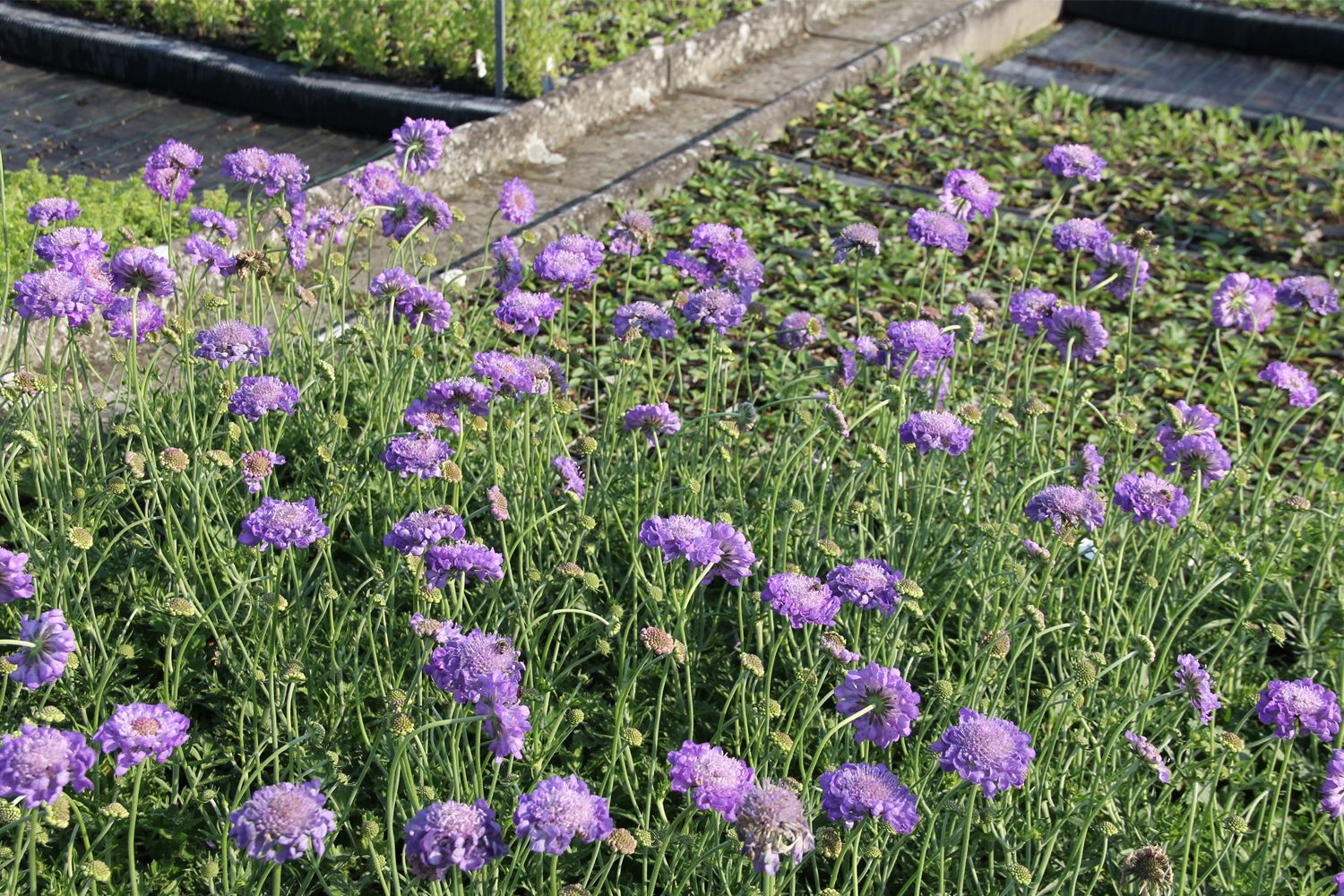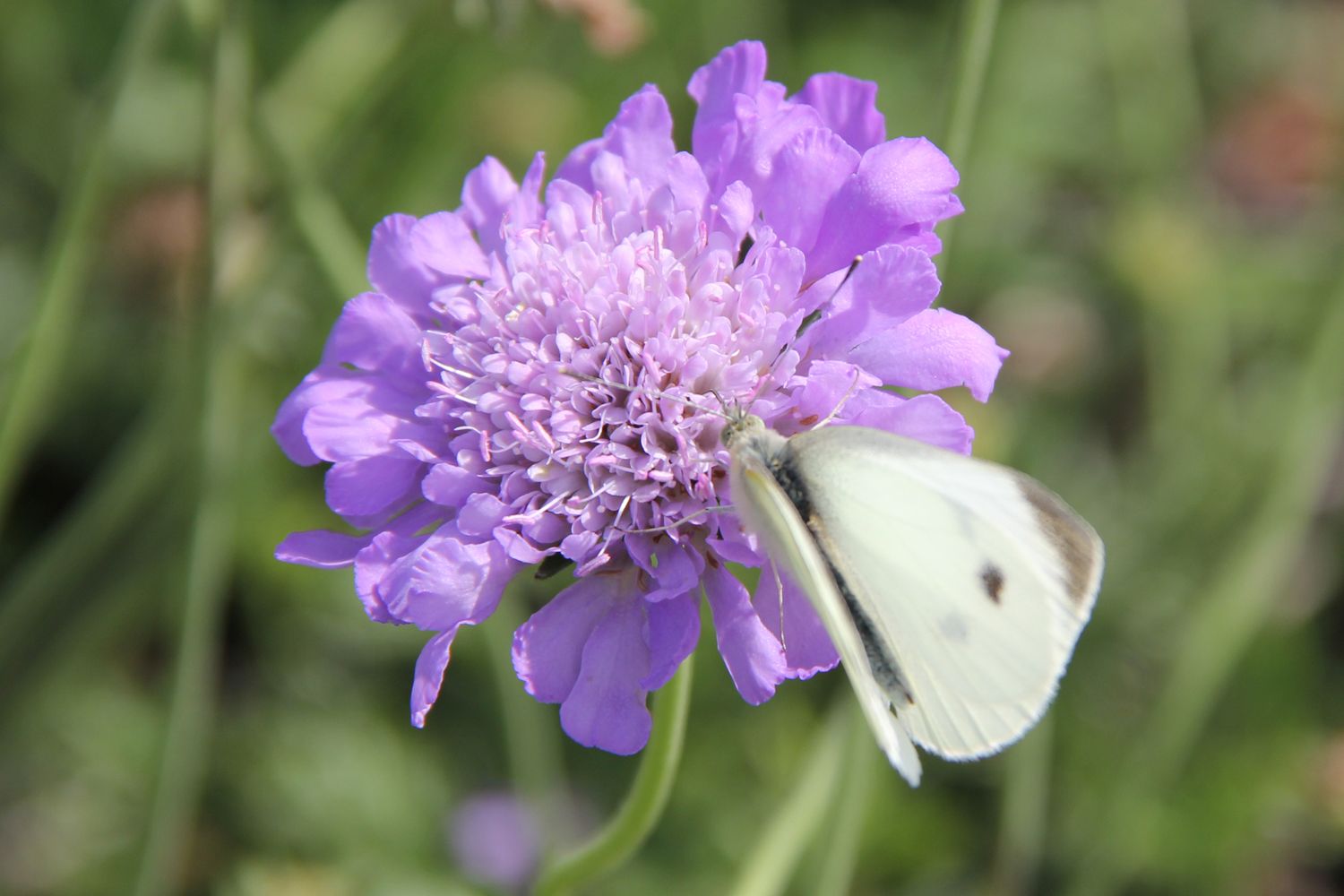 Vom steten Strom der Blüten profitiert bei Scabiosa columbaria 'Mariposa Blue' nicht nur der Mensch. Diese dankbare Pflanze ist heiß begehrt bei Bienen und vielen Schmetterlingsarten, denn sie sorgt für eine beständige, leicht zugängliche Nektarquelle im Sommer.