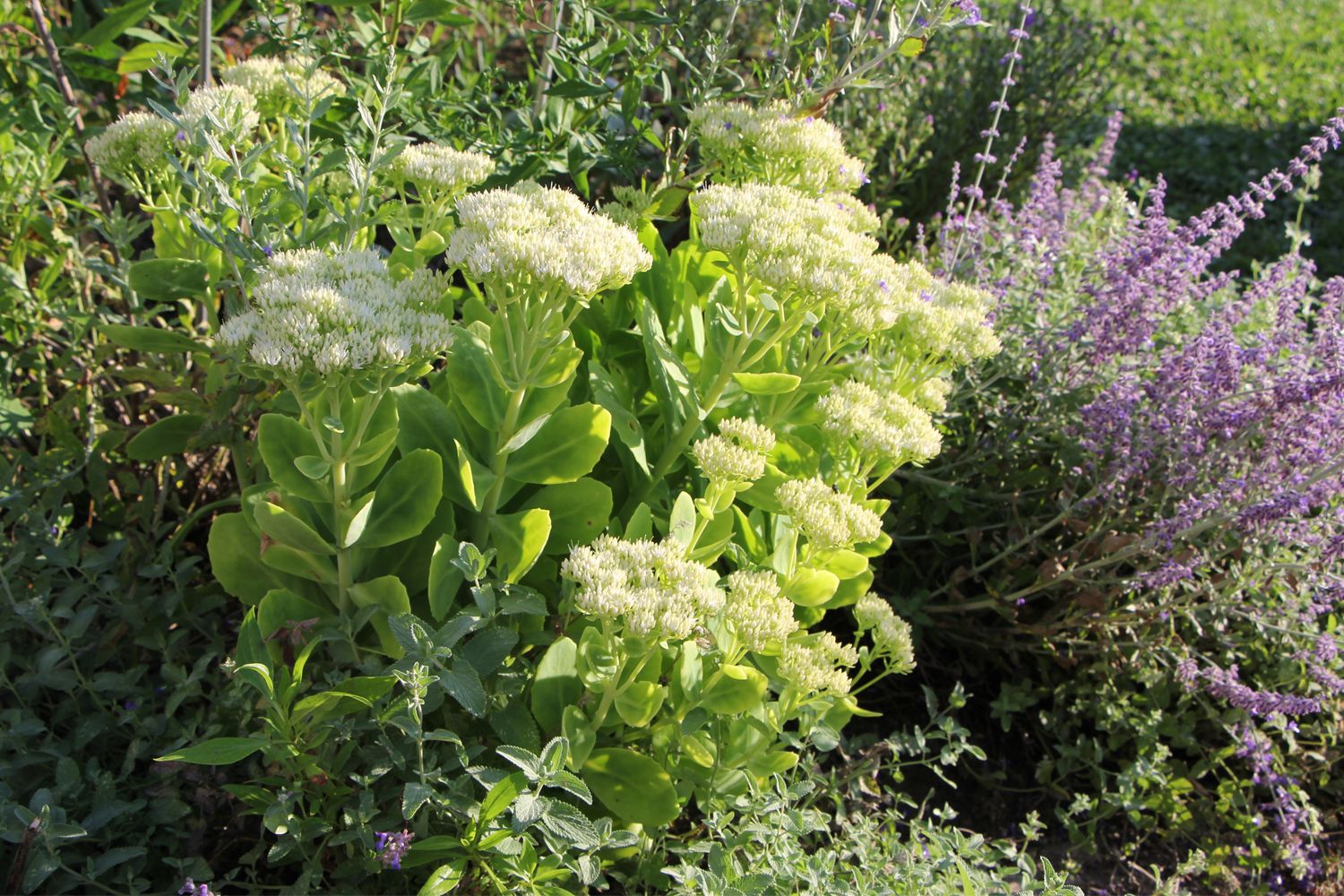 Doch nicht erst zur Blütezeit ist die weiße Fetthenne ein perfekter Partner in sonnig-trockenen Beeten. Auch ohne Blüten ziert das architektonische Laub im Frühsommer die Beete und sorgt für gekonnte Kontraste besonders im Zusammenspiel mit feinlaubigen Stauden wie Wermut (Artemisia) oder Gräsern.