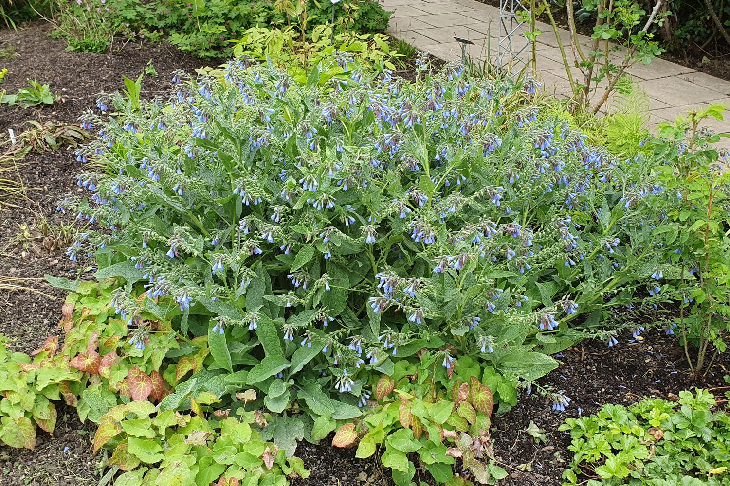 Guter Bodendecker mit wintergrünem Laub und leuchtend blaue Blüten. Nach der Blüte zurückgeschnitten, treiben wieder schöne Blätter aus. Breitet sich stark aus.