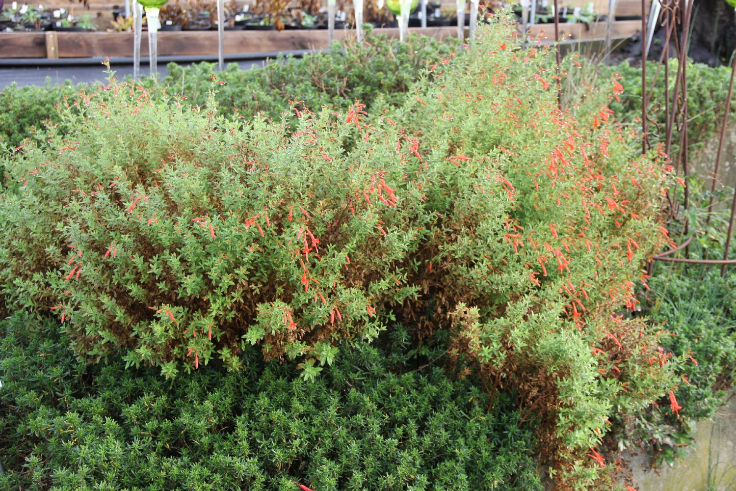 Die Kolibritrompete (Zauschneria californica ssp. latifolia) ist ein schöner Halbstrauch aus den südlichen USA und eignet sich besonders für sonnige Lagen. Sie friert in starken Wintern zurück, treibt aber aus den Wurzelstöcken gut durch. Ein Nässeschutz im Winter ist von Vorteil.