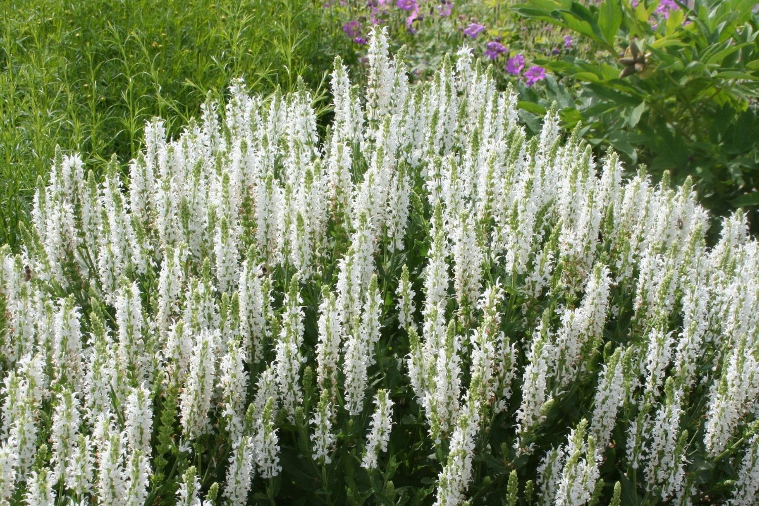 Auf 6 m² vereint das Beetset ‘Blütenfest‘ neben den bereits erwähnten drei Pflanzenspezialitäten jede Menge nostalgische Staudenklassiker sowie top-moderne neue Sorten. Zwei herrliche Rosen sowie filigrane Ziergräser wie Rutenhirse und Liebesgras schenken der Pflanzung zusätzliche Struktur. In einer fein abgestimmten Farbpalette aus Violettblau-, Pink-, Apricot-, Lachs- und Weißtönen sorgt das Beet von Mai bis Oktober für englisch-romantisches Flair im Garten und begeistert mit seiner unbändigen Blütenpracht.