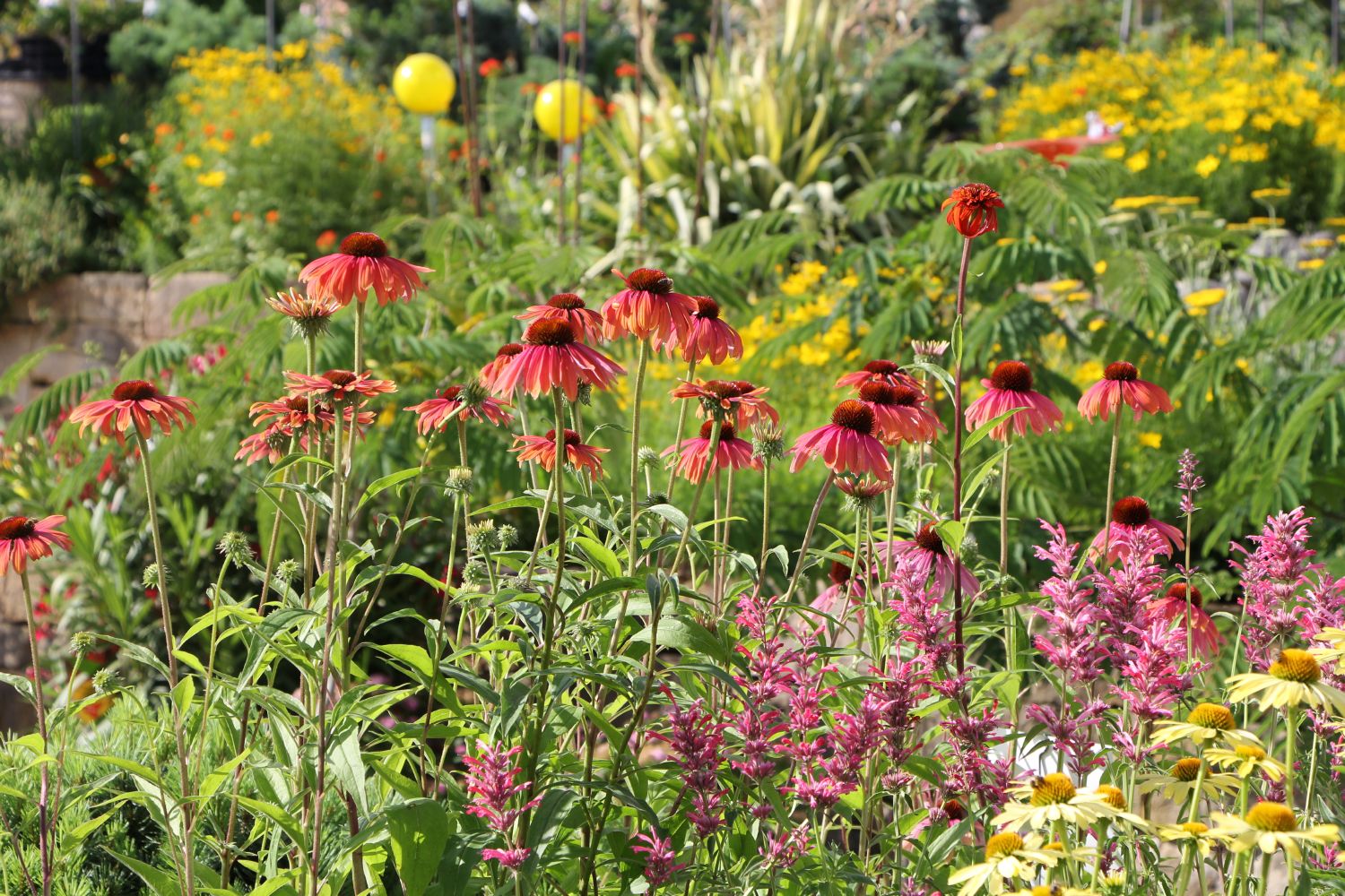 Echinacea 'Rainbow Marcella' ® passt perfekt in Staudenbeete mit leuchtenden Farben. Zur Blütezeit zieht sie unzählige Bienen und Hummeln an. Auch für sommerliche Sträuße eignet sich die reichblühende Sorte bestens.
